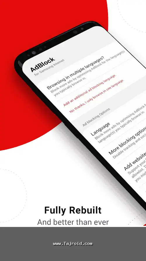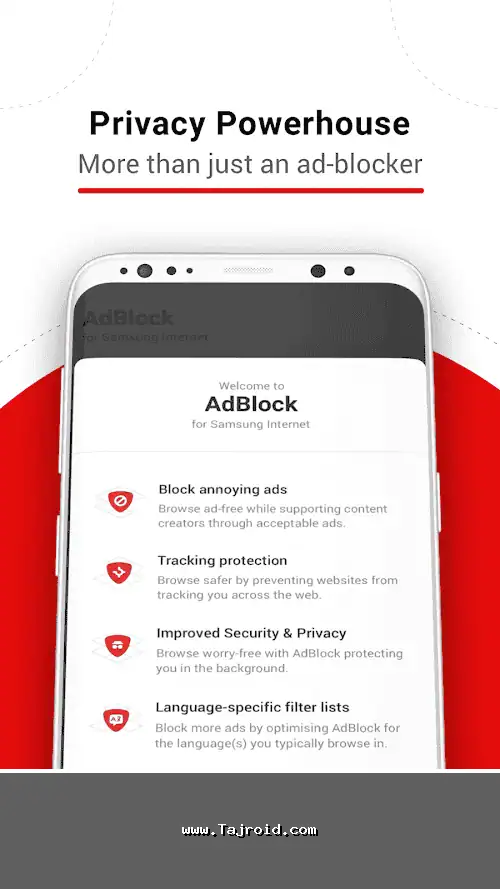 ویژگی های اصلی برنامه AdBlock for Samsung Internet