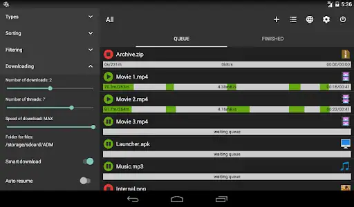 رابط کاربری برنامه Advanced Download Manager اندروید ساده و کاربرپسند طراحی شده تا حتی کاربران تازه کار هم به راحتی بتوانند از امکانات حرفه ای آن استفاده کنند. از ویژگی های مهم آن می توان به پشتیبانی از دانلود چند فایل همزمان، دسته بندی خودکار فایل ها، پشتیبانی از مرورگرها، قابلیت تورنت، حالت تاریک، دانلود ویدیو از سایت ها و نمایش سرعت لحظه ای اشاره کرد. نسخه Pro این اپلیکیشن بدون تبلیغات است و همه قابلیت های ویژه مثل حالت هوشمند دانلود و تنظیم تعداد کانکشن ها را فعال دارد. اگر به دنبال یک دانلود منیجر پیشرفته برای اندروید بدون تبلیغات هستی، ADM Pro بهترین گزینه است.