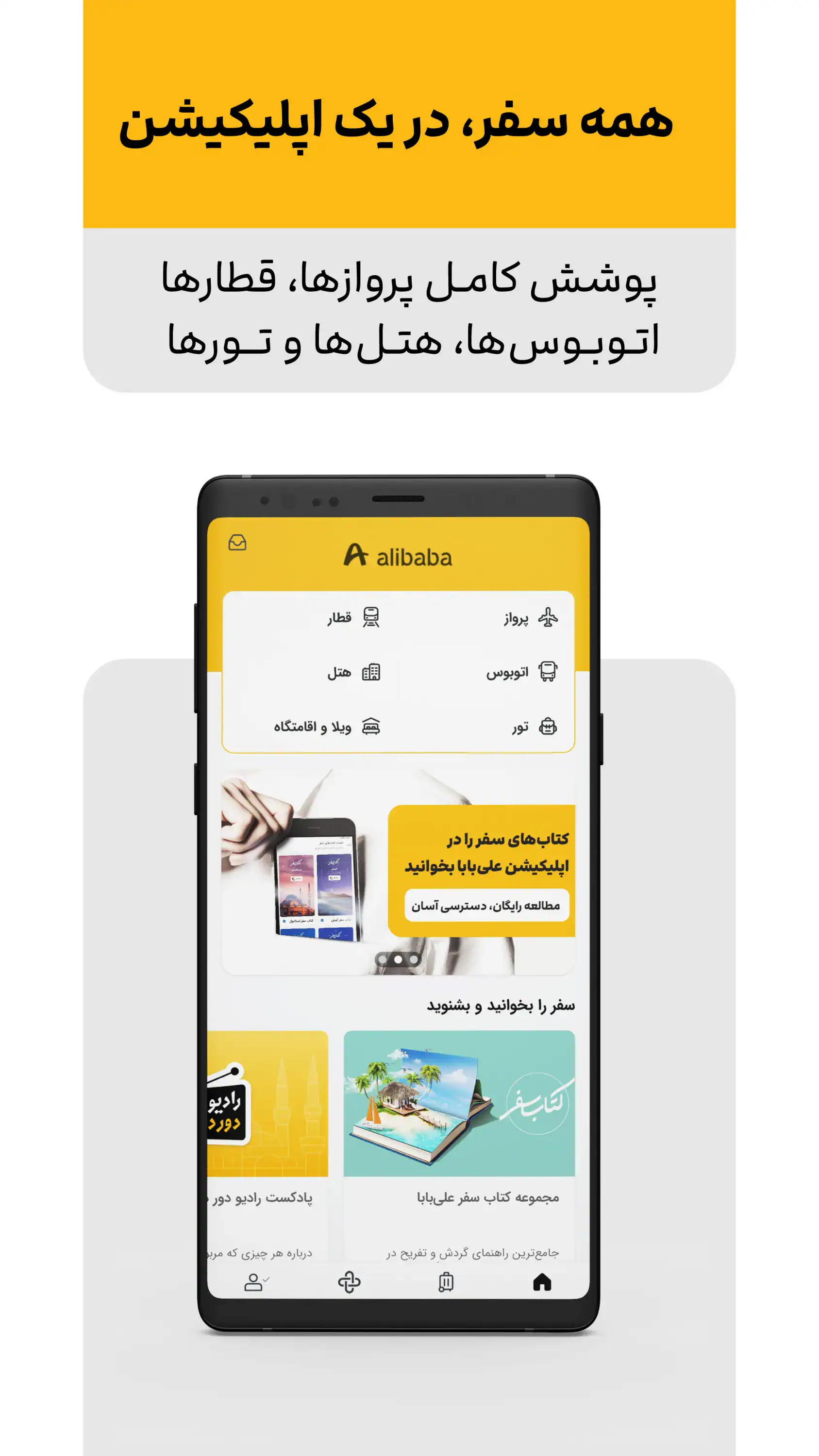 دانلود علی بابا – معرفی اپلیکیشن جامع رزرو بلیط و خدمات سفر AliBaba