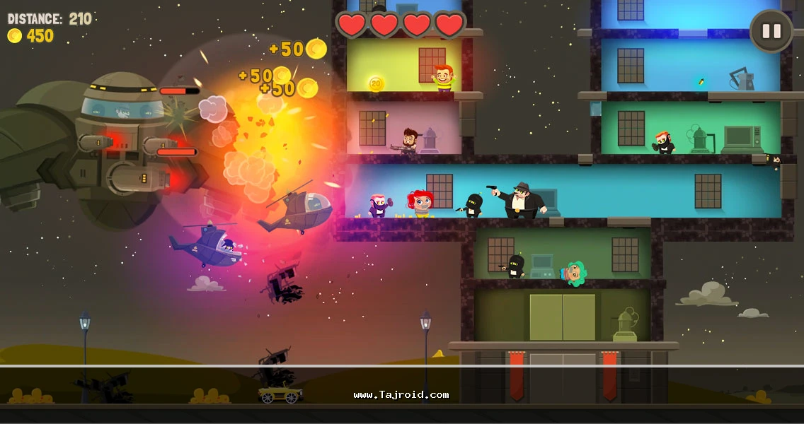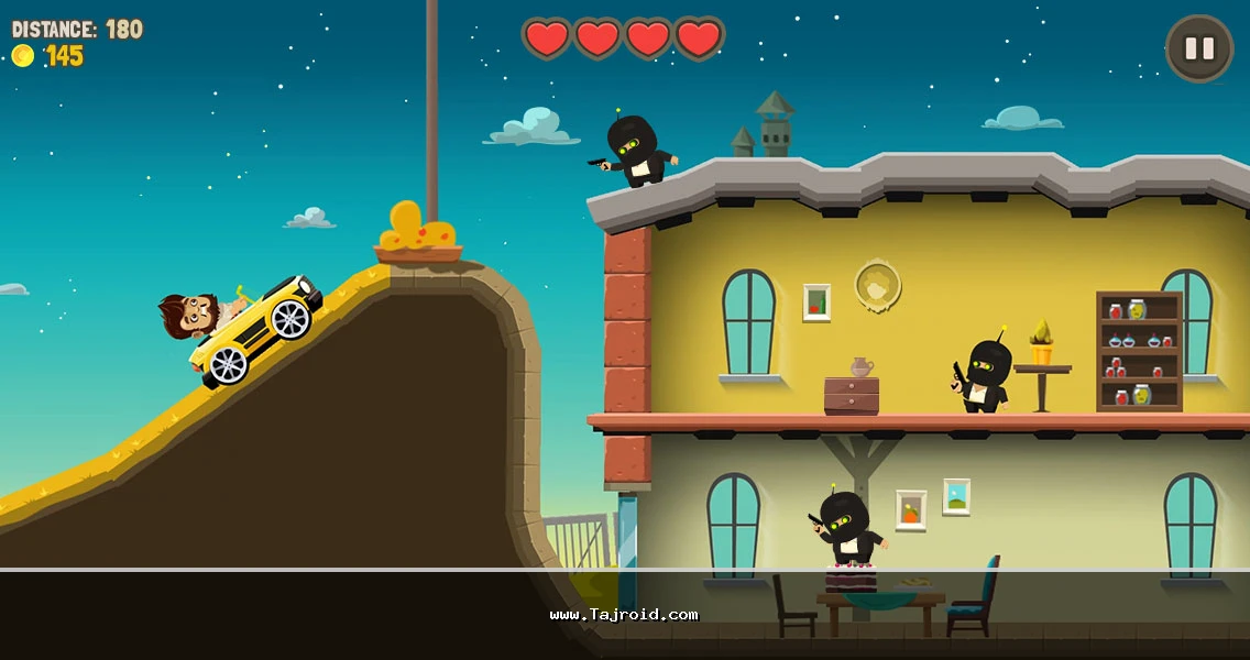 در طول مراحل، انواع قدرت های ویژه (Power-Up)، سلاح ها و آیتم های ارتقایی در مسیر شما قرار می گیرند که با جمع آوری آن ها می توانید خودرو و تجهیزات خود را قوی تر کرده و هیجان بازی را چند برابر کنید. بازی رانندگی بیگانه ها برای اندروید به صورت کاملاً آفلاین قابل اجراست و بدون نیاز به اینترنت می توانید ساعت ها از آن لذت ببرید. علاوه بر نسخه معمولی بازی، نسخه مود Aliens Drive Me Crazy نیز ارائه شده که دارای سکه طلای نامحدود بوده و امکان ارتقا سریع تر خودرو و تجهیزات را فراهم می کند. شما می توانید نسخه اصلی و نسخه مود این بازی اکشن اندروید را به صورت جداگانه و با لینک مستقیم از سایت تاجروید دانلود نمایید.