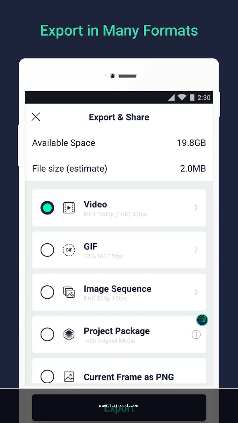 نسخه پریمیوم و آنلاک Alight Motion تمامی امکانات پولی را بدون محدودیت در اختیار شما قرار می دهد؛ بدون واترمارک، با دسترسی کامل به افکت ها، فونت ها و ابزارهای حرفه ای. چه برای ساخت انیمیشن، چه ادیت کلیپ های اینستاگرامی، یوتیوبی یا تیزرهای تبلیغاتی، این اپلیکیشن یکی از بهترین انتخاب های ممکن در اندروید محسوب می شود. در پایان می توانید نسخه کامل و آنلاک این برنامه را از تاجروید دریافت کنید.