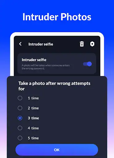 👑 ثبت خودکار عکس از افراد هنگام وارد کردن رمز اشتباه (Intruder Selfie)