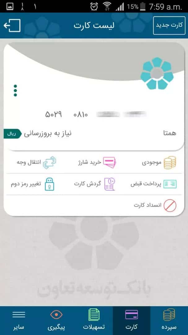 دانلود Tose’e Ta’avon MBanking آپدیت همراه بانک توسعه تعاون با رمز پویا و پرداخت اقساط