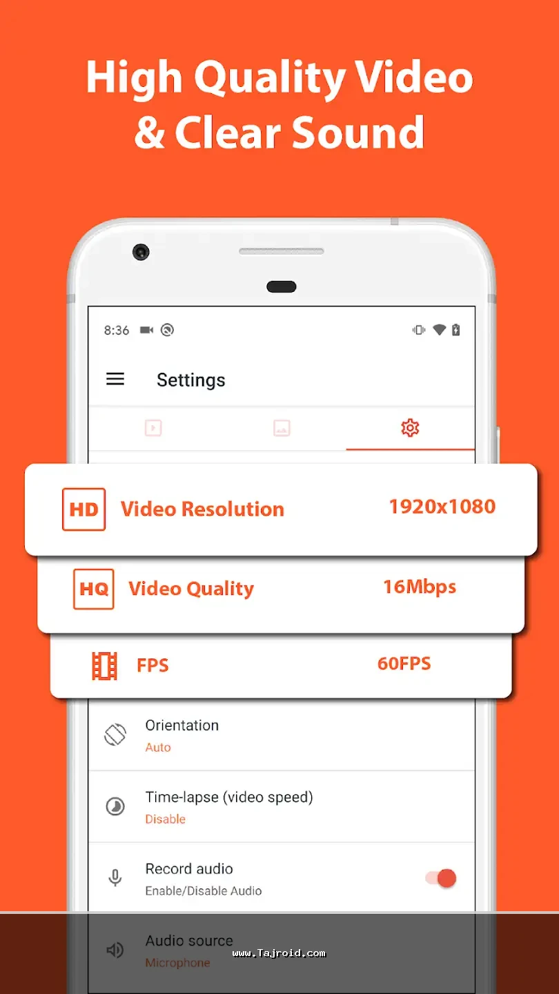 یکی از مهم ترین دلایل محبوبیت AZ Screen Recorder، ضبط ویدئو بدون محدودیت زمانی و بدون واترمارک است. شما می توانید ویدئوهای آموزشی، گیم پلی بازی ها، کلاس های آنلاین، تماس های تصویری و هر فعالیت دیگری را با رزولوشن های مختلف تا Full HD و حتی بالاتر ضبط کنید. در صورت نیاز، امکان توقف و ادامه ضبط نیز وجود دارد تا بتوانید بدون از دست رفتن کیفیت، ضبط خود را در زمان دلخواه ادامه دهید.
