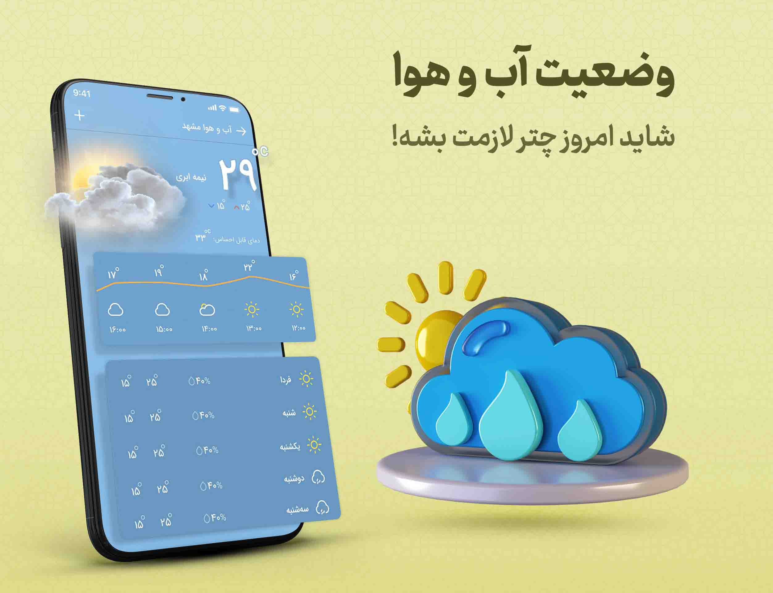 برنامه BadeSaba همچنین امکان نمایش اوقات شرعی را با دقت بالا در اختیار شما می گذارد. این اطلاعات براساس موقعیت مکانی شما تنظیم می شوند و به صورت خودکار به روزرسانی خواهند شد. وجود ویجت اختصاصی برنامه روی صفحه اصلی گوشی، دسترسی شما به زمان فعلی، تاریخ شمسی و وضعیت مناسبت روز را بسیار آسان می کند. این ویجت ها کاملاً قابل شخصی سازی هستند و می توانید نوع نمایش و اندازه آن ها را مطابق سلیقه تان تنظیم کنید.