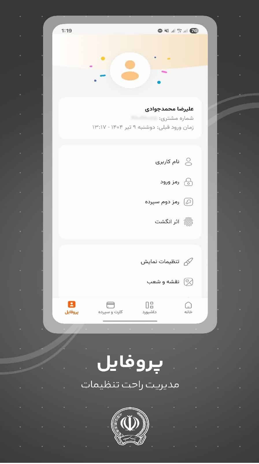 - 👑 ورود با اثر انگشت و مسدودی فوری کارت