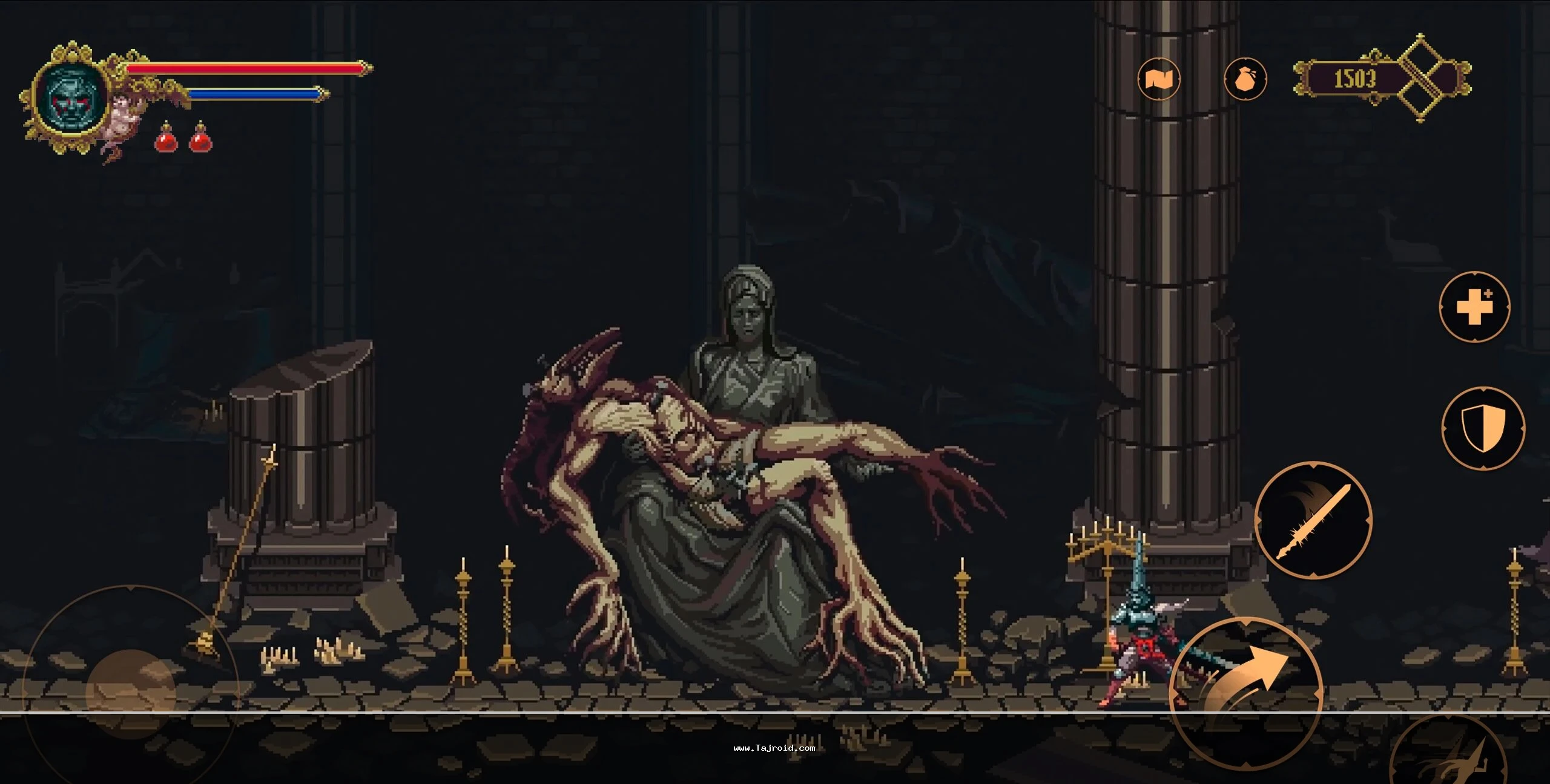 کفرآمیز یک بازی اکشن –ماجراجویانه پلتفرمر در سبک مترویدوانیا است که به صورت نسخه خریداری شده و کامل به همراه نسخه مود شده با جاودانگی برای اندروید در دسترس قرار گرفته و یکی از تاریک ترین و عمیق ترین تجربه های این سبک را روی موبایل ارائه می دهد. این بازی توسط استودیوی اسپانیایی The Game Kitchen ساخته شده و پس از موفقیت چشمگیر روی کنسول ها، نسخه رسمی موبایلی آن منتشر شد تا کاربران اندرویدی نیز بتوانند وارد دنیای خشن، مذهبی و پررمزوراز Blasphemous شوند. فضای سنگین، روایت نمادین و گیم پلی بی رحمانه، از همان دقایق ابتدایی شما را درگیر می کند.