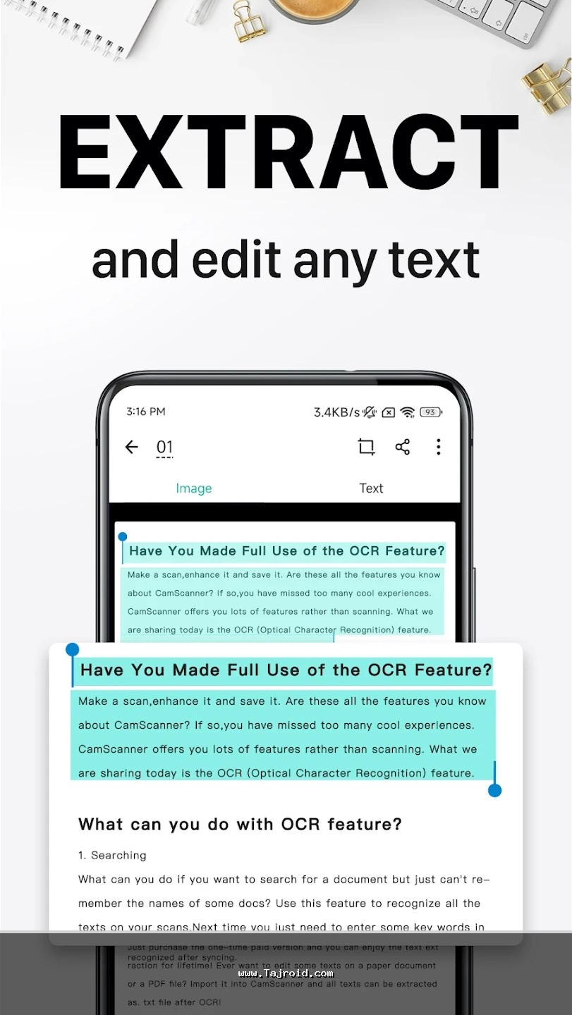 برنامه اسکن اسناد کم اسکنر برای اندروید به دلیل دقت بالا، سرعت مناسب و رابط کاربری ساده اما حرفه ای، به یکی از بهترین انتخاب ها برای افرادی تبدیل شده که به دنبال یک اسکنر قدرتمند موبایل هستند. چه برای استفاده شخصی، چه تحصیلی و چه کاری، این اپلیکیشن می تواند جایگزین مناسبی برای دستگاه های اسکنر فیزیکی باشد. اگر به دنبال یک برنامه اسکن PDF اندروید پرمیوم با امکانات کامل و بدون نیاز به پرداخت درون برنامه ای هستید، می توانید جدیدترین نسخه آنلاک CamScanner را با لینک مستقیم از سایت تاجروید دانلود و نصب نمایید.