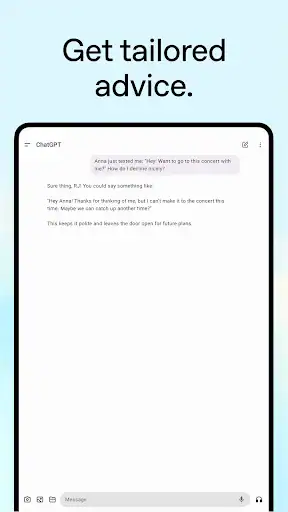 برنامه چت جی پی تی (ChatGPT) یکی از هوشمندترین و محبوب ترین ابزارهای گفت وگوی هوش مصنوعی در جهان است که توسط شرکت OpenAI توسعه یافته است. با استفاده از این اپلیکیشن می توانید به صورت زنده با هوش مصنوعی گفت وگو کنید، سوال بپرسید، متن تولید کنید، ترجمه انجام دهید و حتی در نوشتن مقاله یا برنامه نویسی کمک بگیرید. نسخه جدید ChatGPT برای اندروید با رابط کاربری ساده، سرعت بالا و اتصال مستقیم به سرورهای رسمی OpenAI عرضه شده و بدون خطا یا محدودیت اجرا می شود.