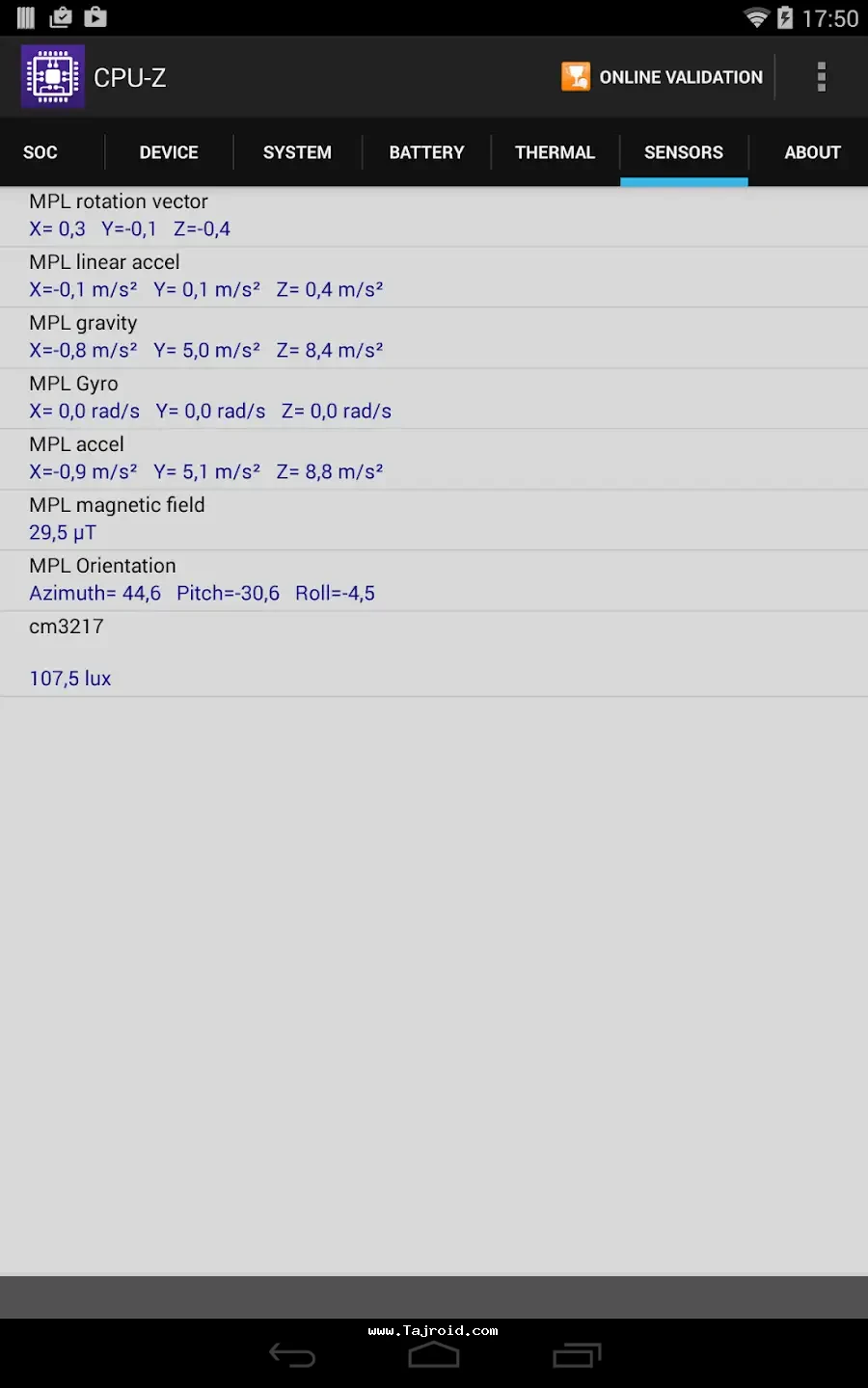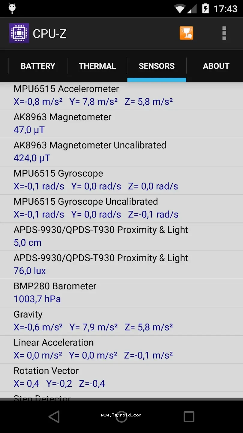 👑 نمایش اطلاعات سنسورها، کرنل و نسخه اندروید