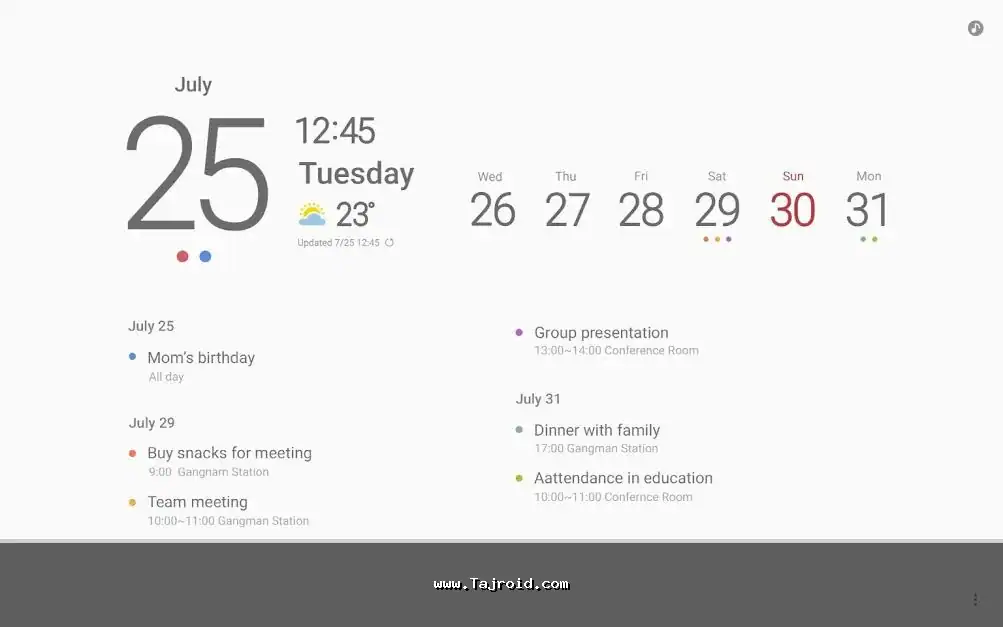 دانلود دیلی بورد: تبدیل تبلت سامسونگ به یک نمایشگر اطلاعات زیبا هنگام شارژ