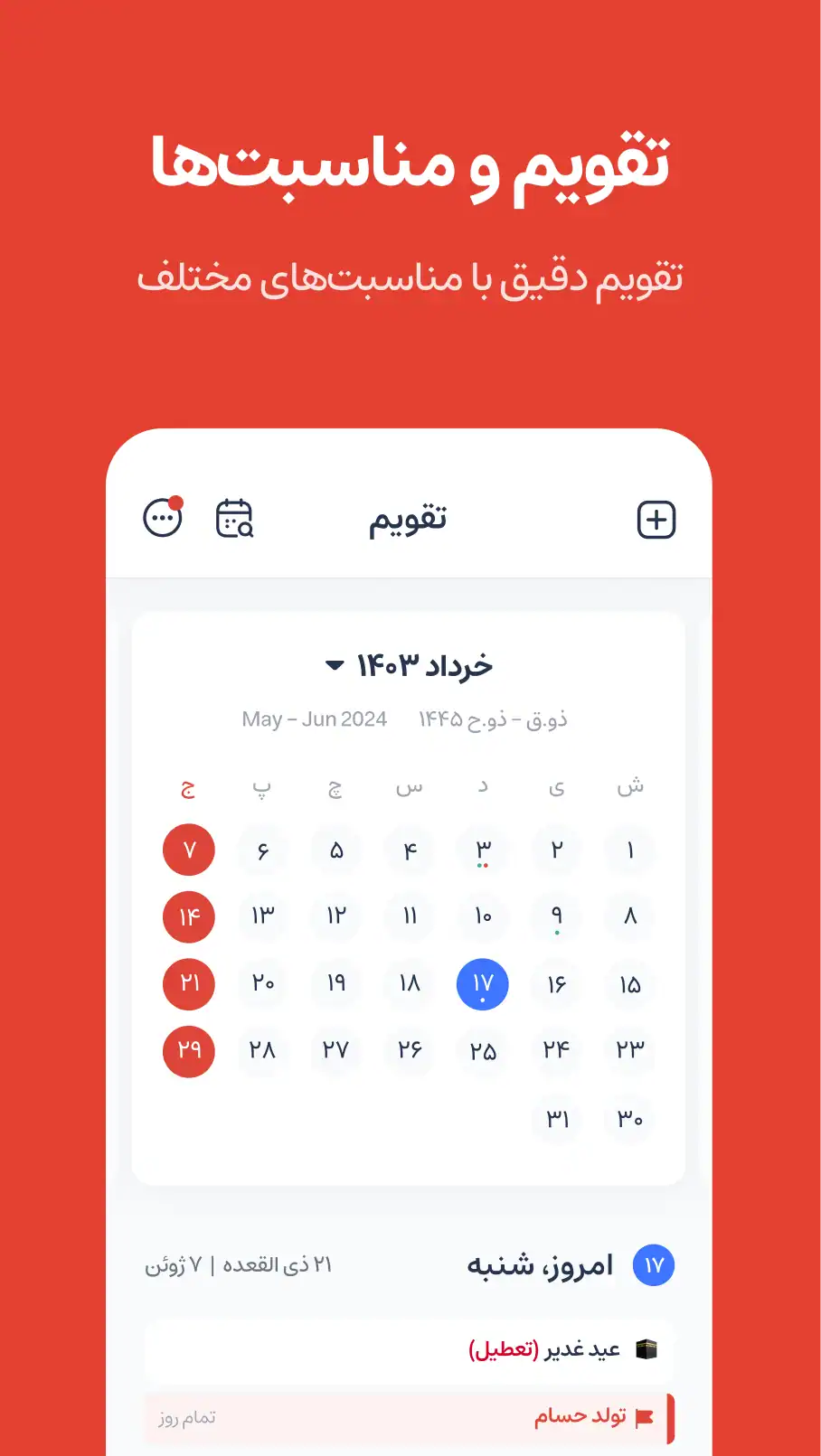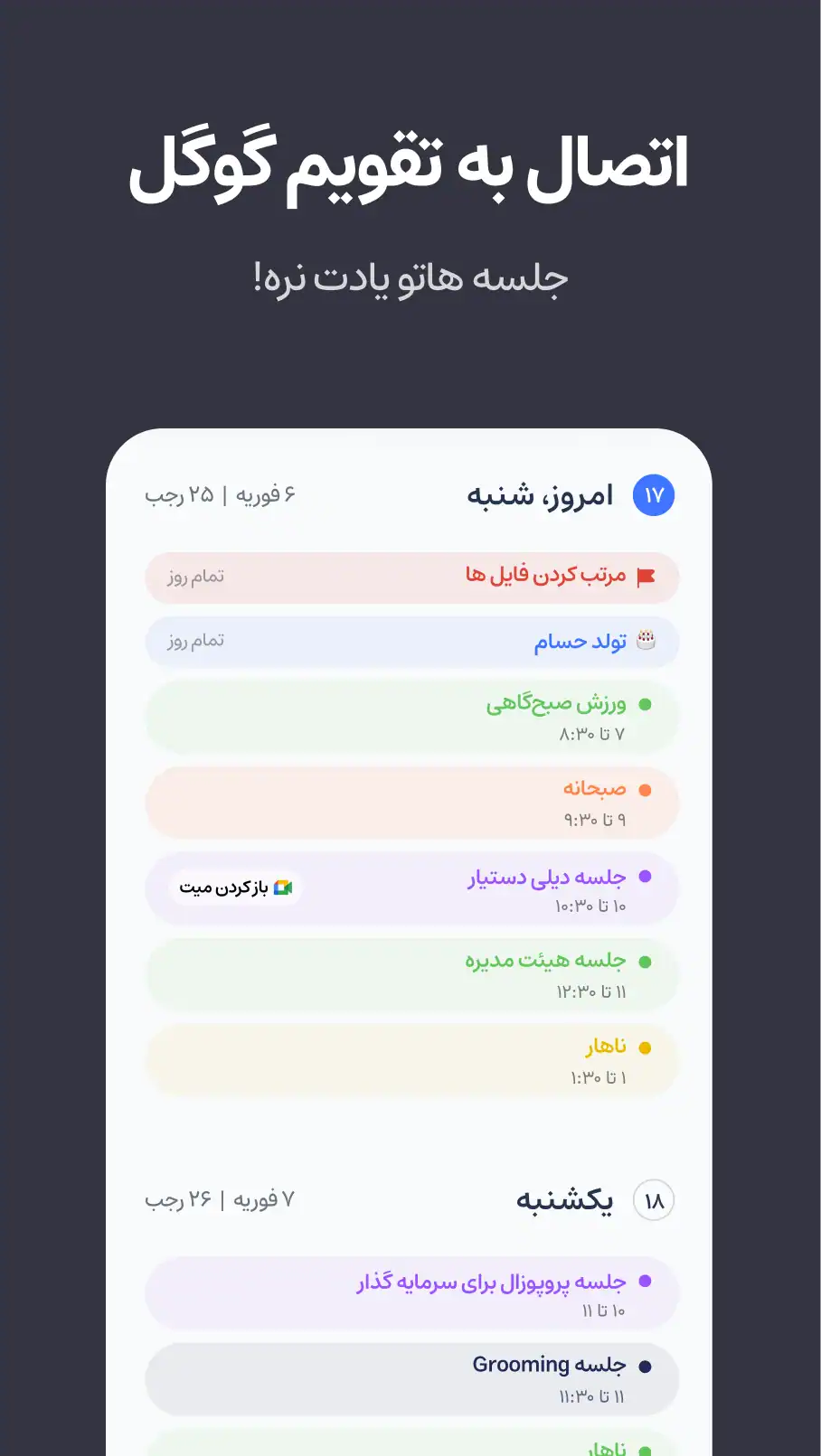 👑 تقویم کامل روزانه، هفتگی و ماهانه