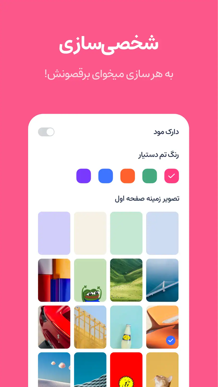 👑 پشتیبانی از شخصی سازی رنگ و تم برنامه