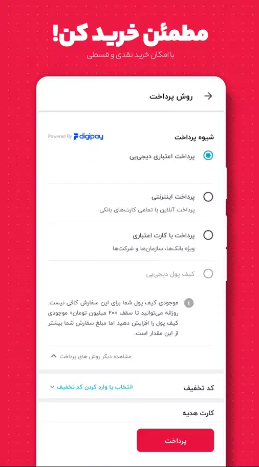 ویژگی های برنامه DigiKala