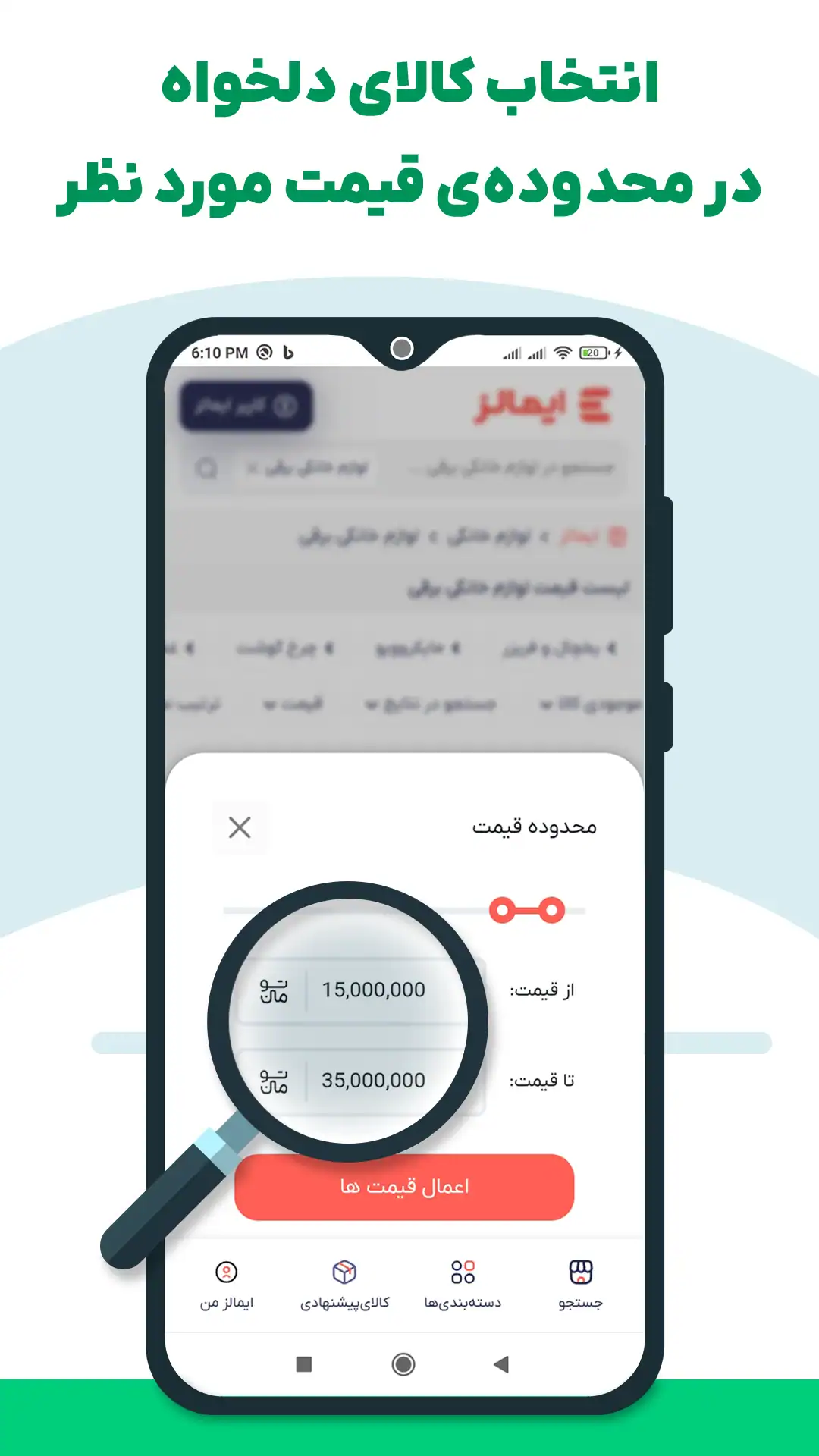 یکی از نقاط قوت اپلیکیشن ایمالز، امکان مقایسه هم زمان چند کالا است. کاربران می توانند چند محصول مشابه را انتخاب کرده و ویژگی های آن ها را به صورت جدول در کنار یکدیگر مشاهده کنند. این قابلیت باعث می شود تصمیم گیری برای خرید دقیق تر و منطقی تر باشد. علاوه بر این، فیلترهای پیشرفته ای برای محدود کردن نتایج جستجو در نظر گرفته شده تا کاربران بر اساس قیمت، برند، رنگ، ویژگی های محصول، فروشنده، وضعیت موجودی و ده ها پارامتر دیگر نتایج را شخصی سازی کنند. این فیلترها کمک می کنند سریع تر به کالای موردنظر برسید و زمان جستجو به حداقل برسد.