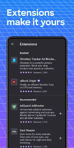 👑 پشتیبانی از افزونه ها (Add-ons) برای شخصی سازی مرورگر