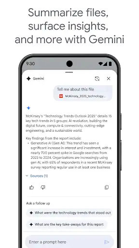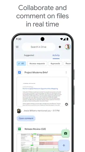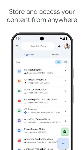 اپلیکیشن Google Drive اندروید علاوه بر ذخیره سازی فایل، امکاناتی برای اشتراک گذاری سریع با دیگر کاربران، تعیین سطح دسترسی (مشاهده یا ویرایش) و جست وجوی هوشمند فایل ها دارد. این برنامه با سایر سرویس های گوگل مثل Google Docs، Sheets و Photos نیز کاملاً هماهنگ است و به شما اجازه می دهد فایل های متنی و پروژه های کاری را مستقیماً در محیط درایو ویرایش کنید. امنیت بالا، رمزگذاری داده ها و قابلیت بکاپ گیری خودکار از دیگر نقاط قوت این اپلیکیشن محبوب هستند.