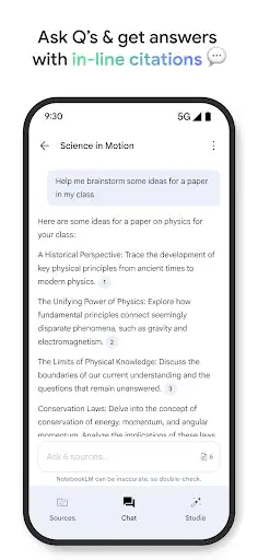 از دیگر ویژگی های جذاب Google NotebookLM اندروید می توان به امکان گفت وگو با اسناد اشاره کرد. شما می توانید سوالات خود را از یک مقاله یا فایل خاص بپرسید و پاسخ دقیق، خلاصه و مرتبط دریافت کنید. همچنین این برنامه قابلیت تولید خودکار چکیده، فهرست نکات کلیدی، و پیشنهاد موضوعات جدید را دارد. محیط کاربری ساده و مینیمال آن باعث شده تا هر کاربر، از دانشجو تا نویسنده یا مدیر پروژه، بتواند از NotebookLM به عنوان دستیار هوش مصنوعی شخصی خود استفاده کند.