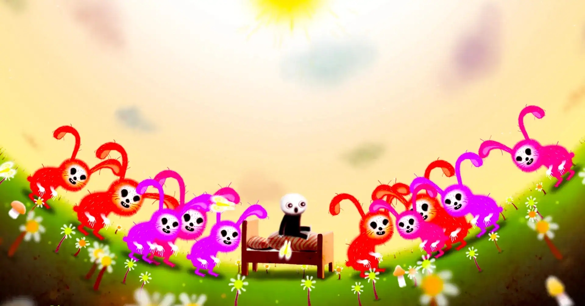 Happy Game – بازی شاد اثری متفاوت از استودیوی مشهور Amanita Design است؛ استودیویی که با ساخت بازی های خلاقانه و محبوبی مانند Machinarium، Botanicula، CHUCHEL و Samorost شهرت جهانی پیدا کرده است. این بازی با قیمت 5.99 دلار عرضه شده و اکنون نسخه کامل و خریداری شده آن برای اندروید در دسترس قرار گرفته است. Happy Game تجربه ای کاملاً هنری، سورئال و در عین حال ترسناک ارائه می دهد؛ اثری که تضاد میان زیبایی کودکانه و کابوس های تاریک را به شکلی خلاقانه نمایش می دهد. در این بازی شما در نقش پسربچه ای قرار می گیرید که با ورود به خواب، گرفتار دنیایی عجیب، ناراحت کننده و پر از نمادهای ذهنی می شود.