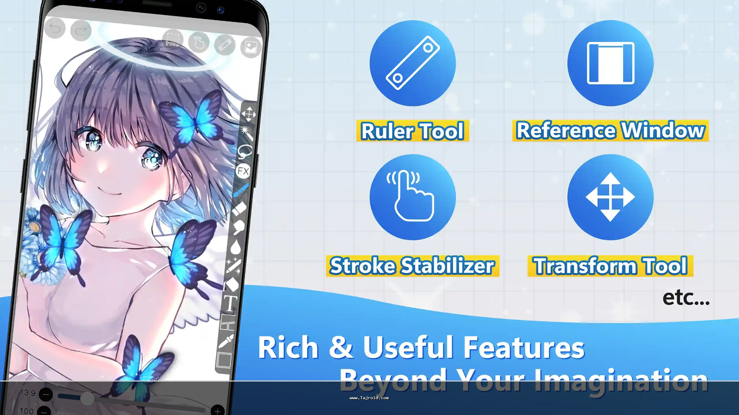 سیستم Layer حرفه ای این برنامه امکان شخصی سازی کامل هر لایه را فراهم می کند؛ می توانید شفافیت، ترکیب رنگ ها، ترتیب لایه ها و حتی افکت های اختصاصی را به دلخواه تنظیم کنید. همچنین رابط کاربری برنامه به گونه ای طراحی شده که با استفاده از نوارهای کناری و اسلایدرها، دسترسی سریع و آسانی به تمام ابزارها داشته باشید. نسخه Prime آنلاک شده تمامی قابلیت های پولی را بدون محدودیت در اختیار شما قرار می دهد و تجربه ای کاملاً آزاد و حرفه ای از نقاشی دیجیتال را ارائه می کند. در انتها می توانید این نسخه کامل را از تاجروید دریافت کنید و بدون محدودیت طراحی کنید.