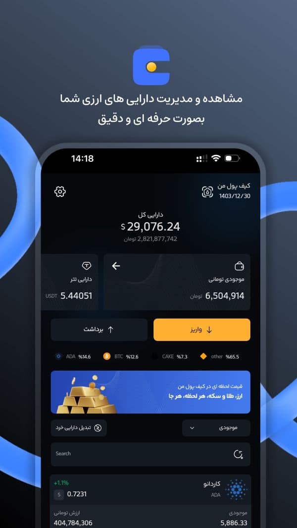 دانلود برنامه کیف پول من – اپلیکیشن خرید، فروش و نگهداری ارز دیجیتال برای اندروید