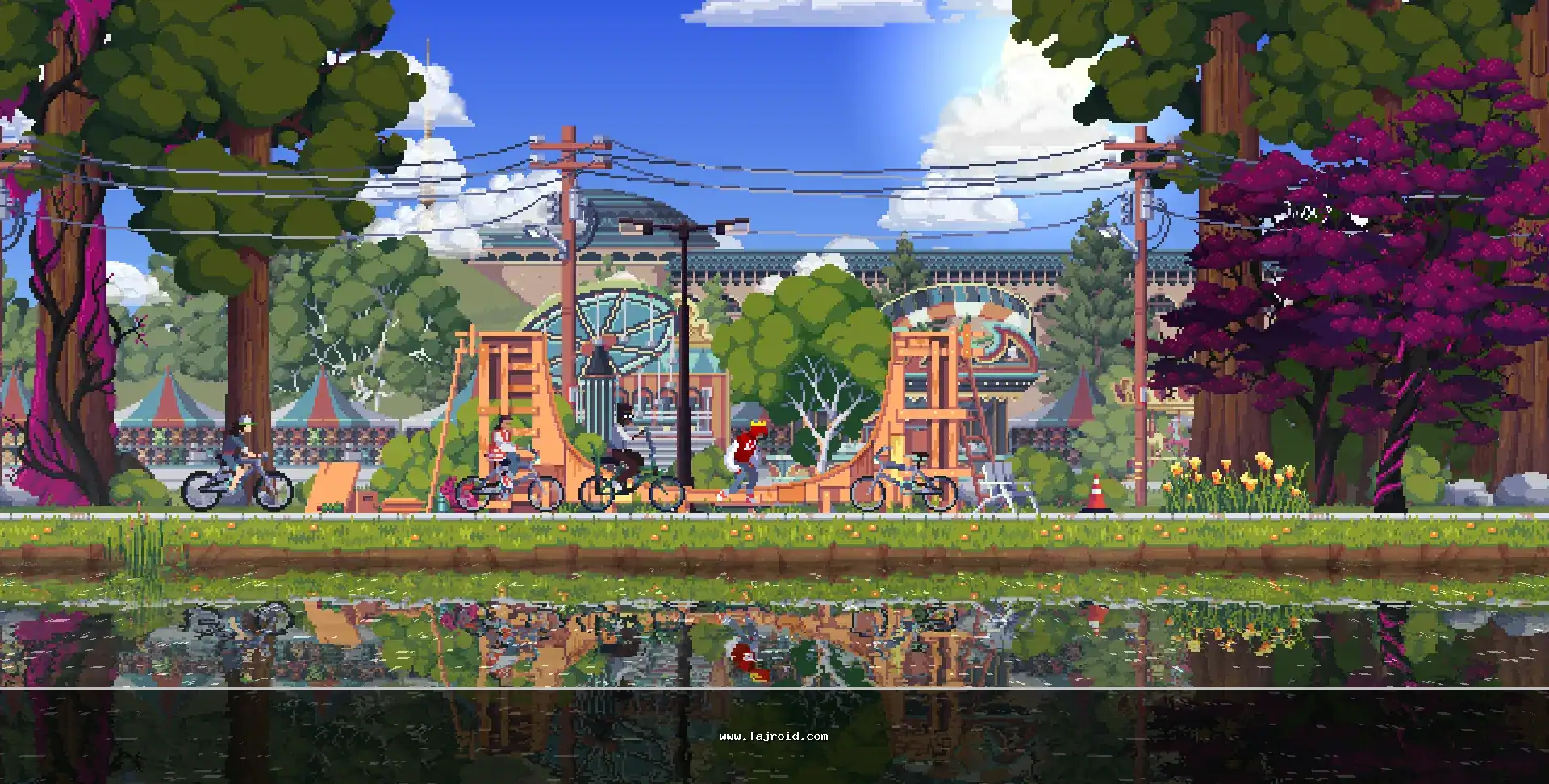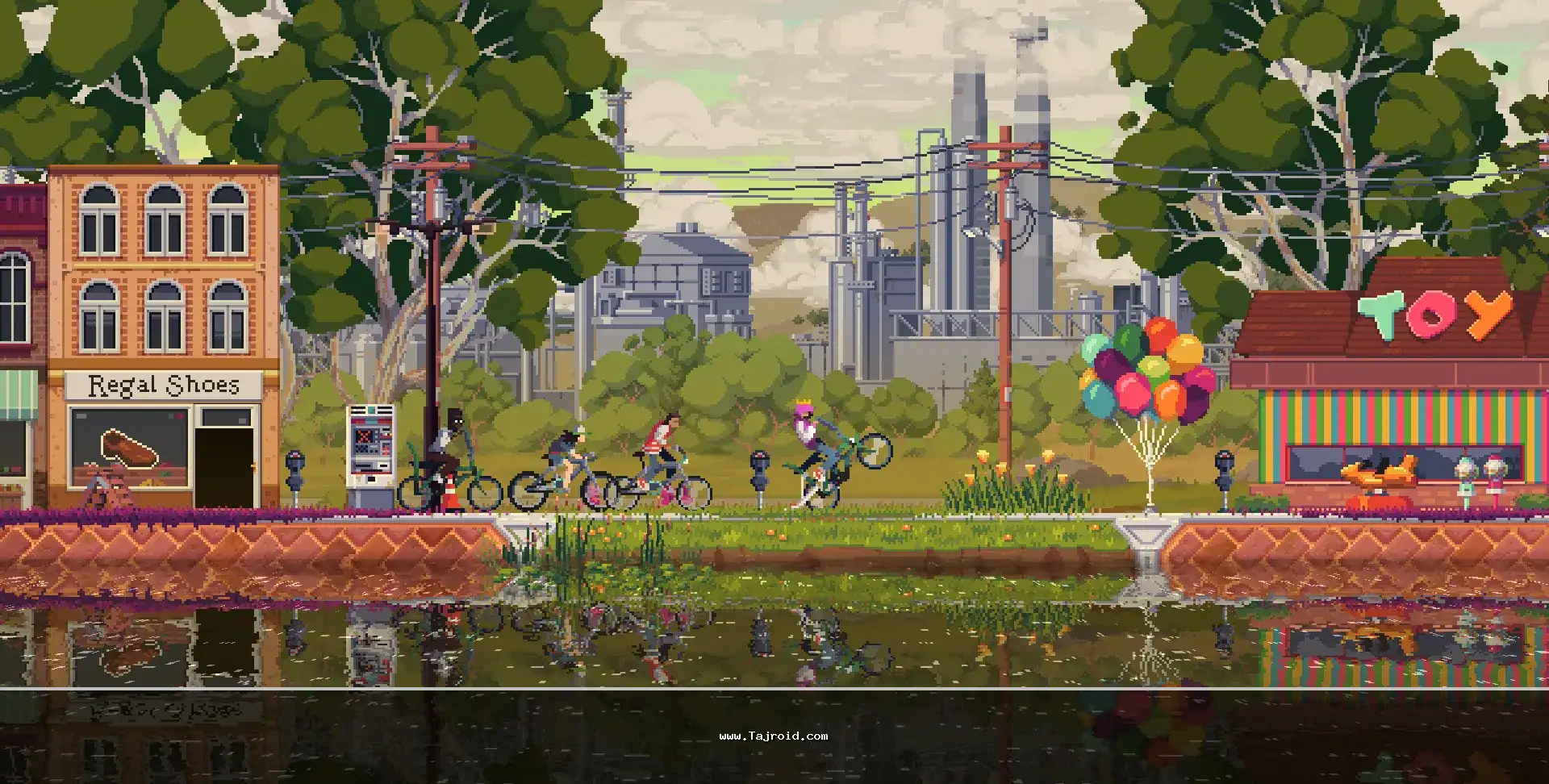 یکی از ویژگی های بارز بازی، گرافیک پیکسلی خیره کننده با پالت رنگی نئونی است که کاملاً حس و حال دهه ۸۰ — با نورهای نئون، مراکز خرید رنگارنگ، پارک های تفریحی و فضای پرانرژی — را زنده می کند. موسیقی متن سینث ویو (Synthwave) عالی نیز کاملاً در این فضا حل شده و تجربه ای غرق کننده و نوستالژیک ایجاد می نماید. بازی کاملاً آفلاین است و نیاز به اینترنت ندارد.