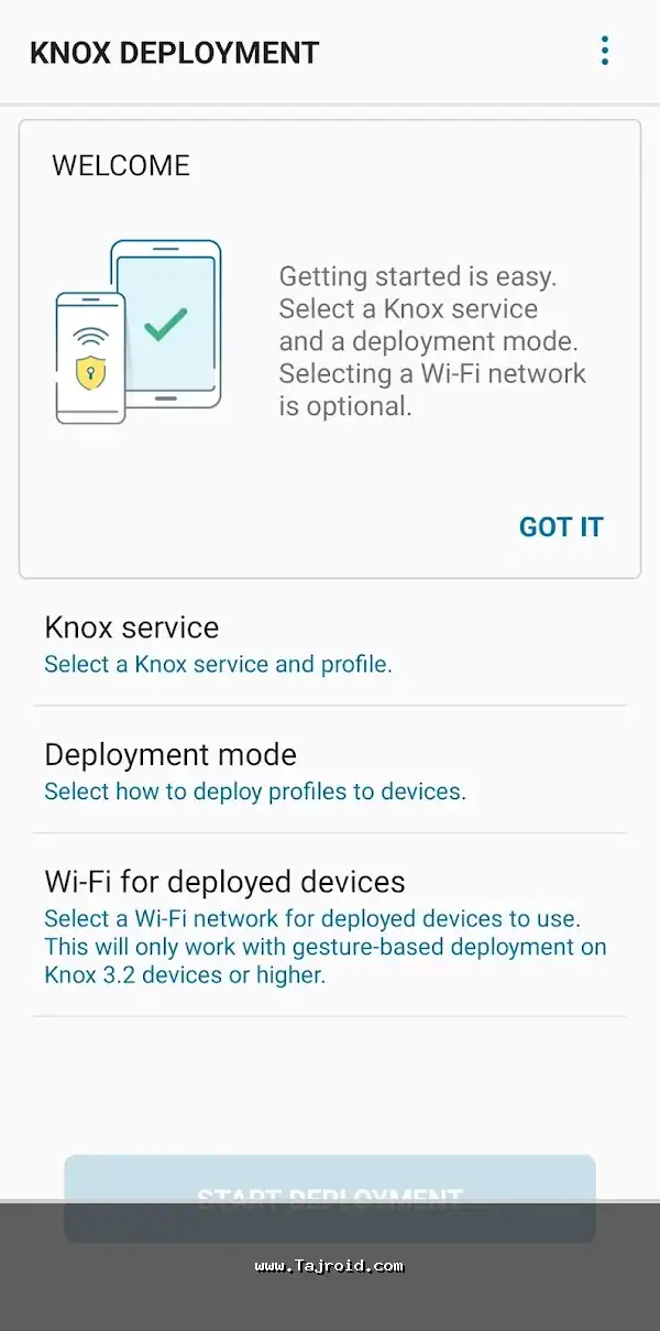 ویژگی های اصلی برنامه Knox Deployment