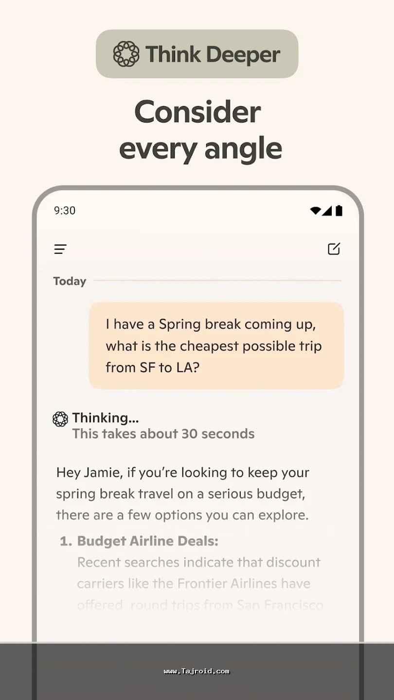 اگر به دنبال دانلود برنامه هوش مصنوعی اندروید با امکانات کامل، سرعت بالا و پشتوانه یک شرکت معتبر هستید، بدون شک Microsoft Copilot نسخه حرفه ای و مود یکی از بهترین انتخاب هاست. شما می توانید جدیدترین نسخه این برنامه را از سایت تاجروید دریافت کرده و آینده ی هوش مصنوعی را همین امروز روی گوشی اندرویدی خود تجربه کنید.