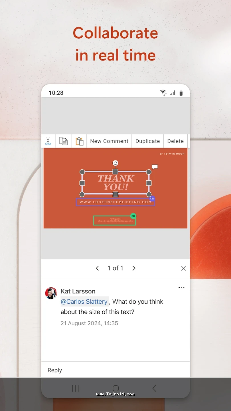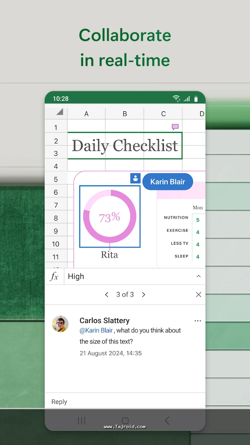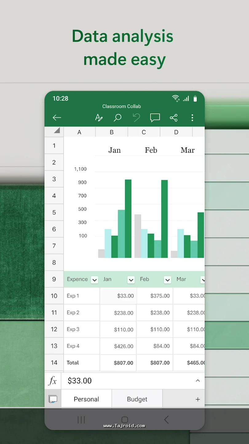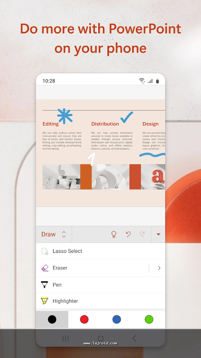 برنامه آفیس اندروید مایکروسافت با رابط کاربری ساده، روان و کاملاً بهینه شده برای صفحه نمایش موبایل و تبلت، تجربه ای سریع و بدون دردسر را در اختیار کاربران قرار می دهد. این پکیج برای دانشجویان، دانش آموزان، کارمندان، مدیران و تمامی افرادی که به صورت روزانه با فایل های آفیس سروکار دارند، یک انتخاب ایده آل محسوب می شود. پشتیبانی از فرمت های مختلف آفیس، هماهنگی عالی بین ابزارها و عملکرد پایدار، باعث شده آفیس مایکروسافت یکی از بهترین برنامه های آفیس اندروید باشد. شما می توانید این پکیج قدرتمند آفیس برای اندروید را به صورت تست شده و مطمئن از سایت تاجروید دانلود کرده و از امکانات کامل آن روی دستگاه اندرویدی خود بهره مند شوید.