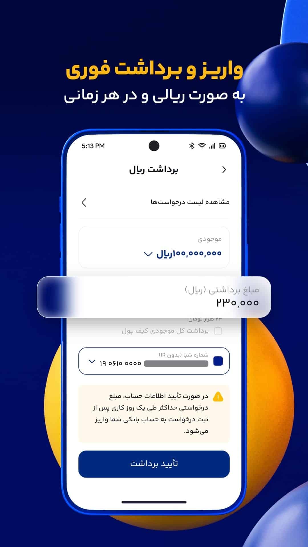 👑 قابلیت برداشت پول به حساب بانکی