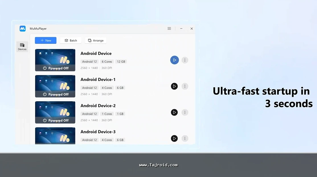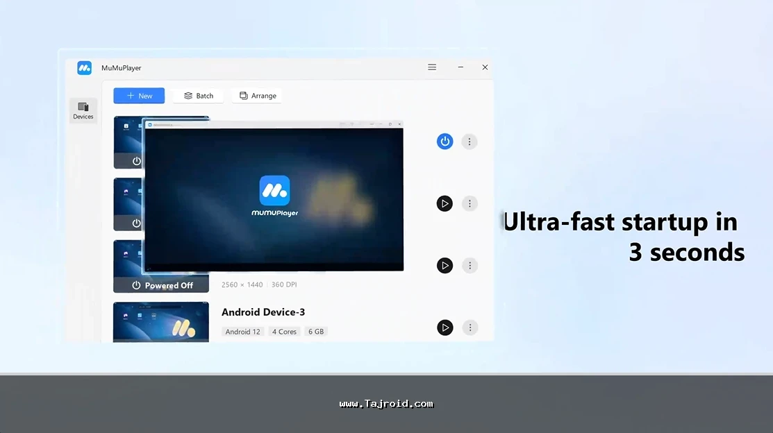 اگر به دنبال شبیه ساز اندروید سبک، سریع و کاملاً سازگار با ویندوز 11 هستید که بدون دردسر بازی های سنگین را اجرا کند، MuMu Player یکی از بهترین گزینه های موجود است. شما می توانید آخرین نسخه نرم افزار MuMu Player برای ویندوز را به صورت تست شده و با لینک مستقیم از سایت تاجروید دانلود کرده و اجرای اندروید روی کامپیوتر را با بالاترین کیفیت تجربه کنید.