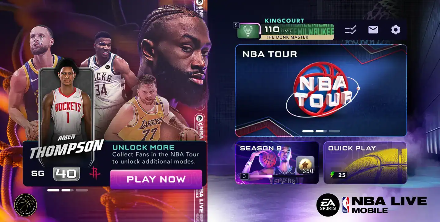 NBA LIVE Mobile Basketball – ان بی ای لایو موبایل از محبوب ترین بازی های بسکتبال رقابتی آنلاین ساخته شرکت معتبر ELECTRONIC ARTS است که تاکنون میلیون ها بازیکن فعال را جذب کرده است. این بازی تجربه ای سریع، هیجان انگیز و واقعی از لیگ حرفه ای NBA ارائه می دهد و به شما اجازه می دهد تیم رویایی خود را از صفر بسازید و با تلاش، تمرین و کسب امتیاز آن را به قهرمانی برسانید.