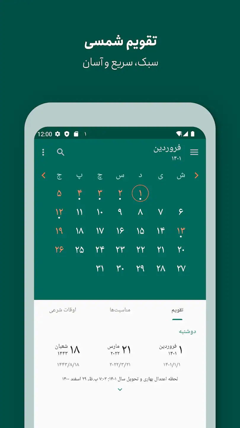 دانلود تقویم فارسی – معرفی Persian Calendar سال برای اندروید