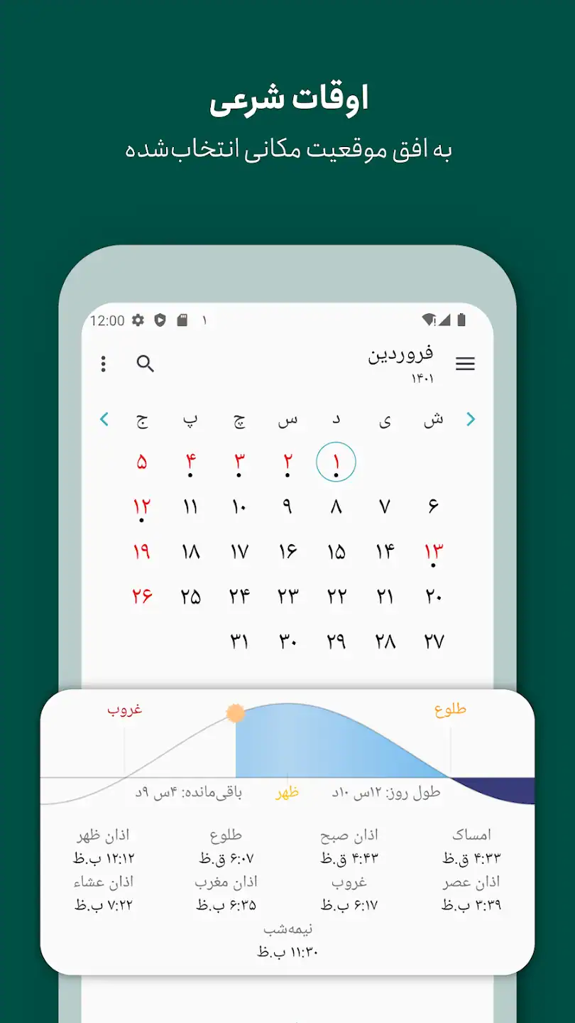یکی از بخش های جذاب تقویم فارسی، نمایش اوقات شرعی متناسب با موقعیت مکانی کاربر است. این قابلیت باعث شده بسیاری از افراد برای زمان بندی دقیق نمازها و فعالیت های روزانه خود از این برنامه استفاده کنند. علاوه بر این، وجود قبله نما در داخل اپلیکیشن باعث می شود کاربران بدون نیاز به برنامه های دیگر بتوانند جهت قبله را پیدا کنند. این مجموعه امکانات باعث شده Persian Calendar تنها یک تقویم ساده نباشد و گزینه ای مناسب برای بسیاری از کاربران در طول روز به شمار آید.