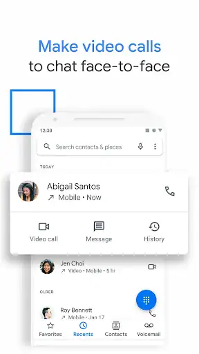 Phone by Google اندروید فراتر از یک اپلیکیشن ساده تماس است. این برنامه به شما امکان می دهد تا با یک لمس، تماس های صوتی خود را به تماس های تصویری تبدیل کنید، اعلان تماس ها را شخصی سازی کرده و حتی تماس های مهم را ضبط نمایید. یکی از قابلیت های برجسته آن، تبدیل تماس به Google Duo Video Call است که تجربه ی ارتباط چهره به چهره را آسان تر می کند. علاوه بر این، سیستم جستجوی داخلی آن به شما اجازه می دهد تا به سرعت نام، شماره یا مکان تماس های اخیر خود را پیدا کنید.