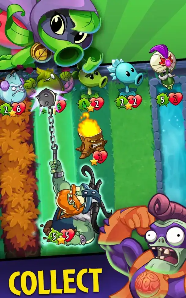 در این نسخه باید قهرمانان مختلف را جمع آوری کنید، تیمی از گیاهان قدرتمند بسازید و با استفاده از کارت های استراتژیک، زامبی ها را شکست دهید. هر قهرمان توانایی ها و کارت های مخصوص خود را دارد و ترکیب درست آن ها می تواند نتیجه نبرد را تغییر دهد. نسخه مود شده بازی نیز امکانات ویژه ای همچون توانایی های سریع تر، کارت های قوی و منابع نامحدود را فراهم می کند تا سریع تر پیشرفت کنید و نبردها را آسان تر ببرید.