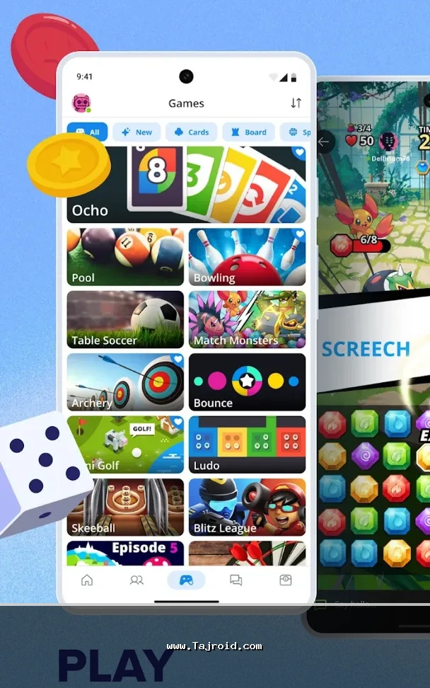 در برنامه Plato برای اندروید شما پس از ساخت حساب کاربری، وارد یک جامعه بزرگ و فعال می شوید که امکان چت خصوصی، چت گروهی، ساخت روم های اختصاصی و بازی هم زمان با دوستان یا کاربران تصادفی را در اختیار شما قرار می دهد. بیش از ۳۰ بازی آنلاین و گروهی در این اپلیکیشن وجود دارد؛ بازی هایی که اغلب کم حجم، سریع و بسیار سرگرم کننده هستند و بدون نیاز به سخت افزار قدرتمند، روی اکثر گوشی های اندرویدی به خوبی اجرا می شوند. همین سادگی در کنار رقابت آنلاین، باعث شده پلاتو به یکی از محبوب ترین انتخاب ها برای دورهمی های مجازی تبدیل شود.