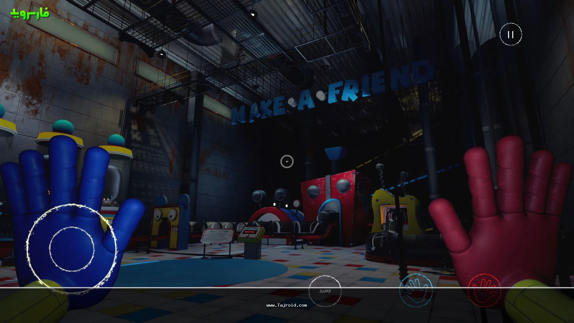 Poppy Playtime Chapter 1 اندروید یک بازی اکشن-ماجرایی و ترسناک است که تمرکز اصلی آن روی فضاسازی، داستان پردازی و ایجاد حس تعلیق عمیق قرار دارد. شما در نقش فردی قرار می گیرید که پس از سال ها به یک کارخانه اسباب بازی متروکه بازمی گردد؛ جایی که هیچ چیز آن طور که به نظر می رسد نیست. محیط های تاریک، صداهای مرموز و شخصیت های عجیب، به مرور شما را وارد دنیایی می کنند که هر لحظه ممکن است با یک اتفاق ترسناک غافلگیر شوید. بسیاری از کاربران، فضای کلی بازی را الهام گرفته از مجموعه Five Nights at Freddy’s می دانند، اما طراحی گرافیکی، انیمیشن ها و گیم پلی روان Poppy Playtime باعث شده هویت مستقلی برای خود داشته باشد.