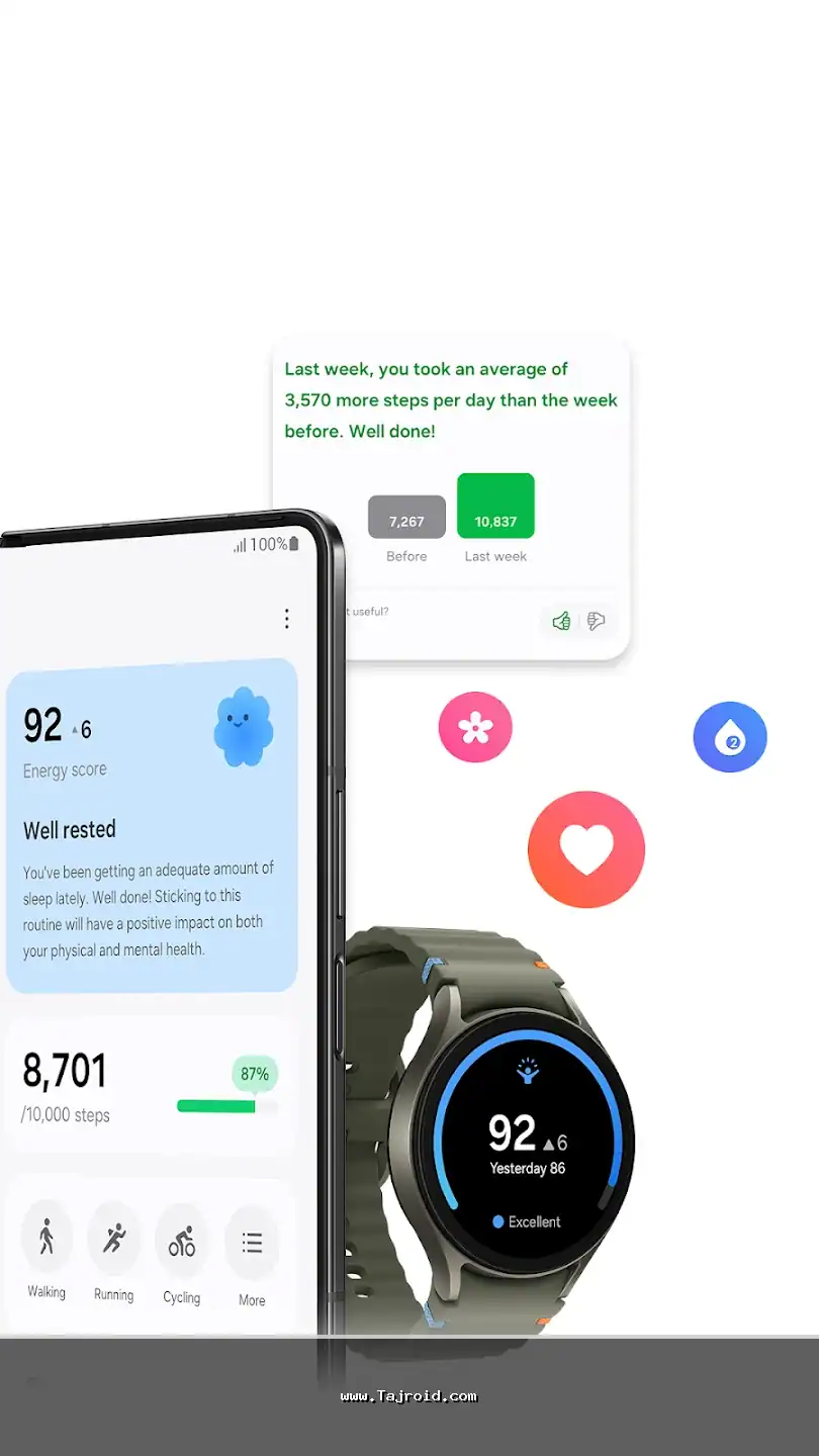 👑 یکپارچگی کامل با دستگاه های پوشیدنی گلکسی (Galaxy Watch, Band)