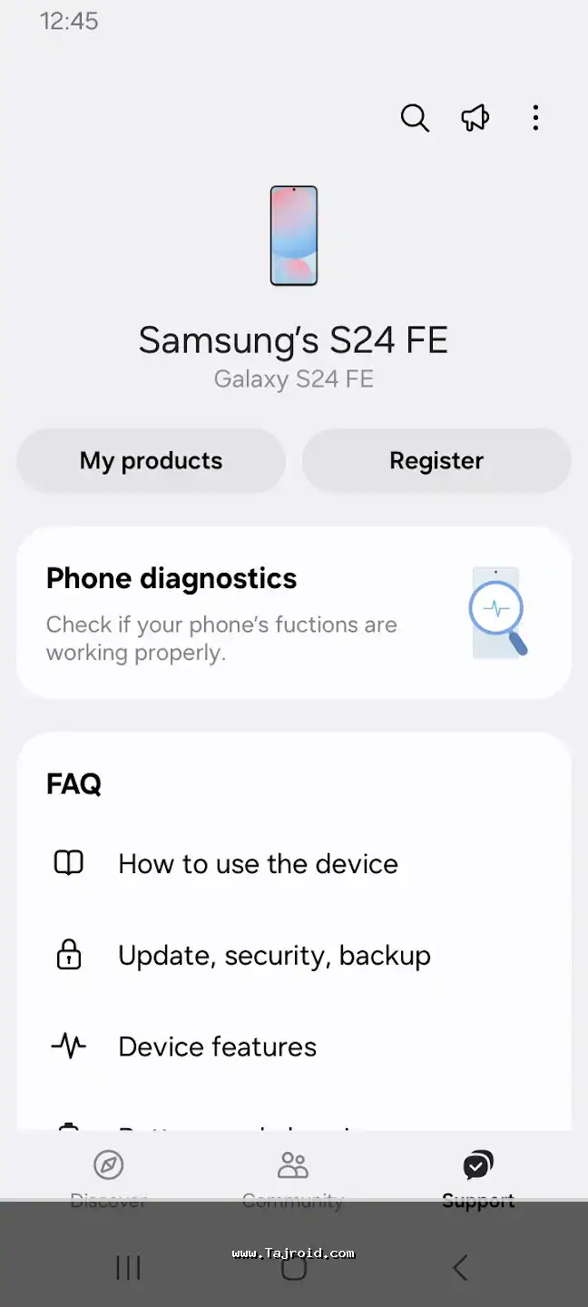 سامسونگ ممبرز یک کانال مستقیم و رسمی با پشتیبانی سامسونگ است. در بخش «دریافت کمک (Get Help)»، شما می توانید از طریق چت زنده (Live Chat) یا تماس تلفنی با کارشناسان پشتیبانی سامسونگ ارتباط برقرار کنید، مشکلات فنی دستگاه خود را شرح داده و راه حل های تخصصی دریافت نمایید. همچنین می توانید دستگاه خود را برای شناسایی و عیب یابی خودکار مشکلات سخت افزاری و نرم افزاری اسکن کنید.