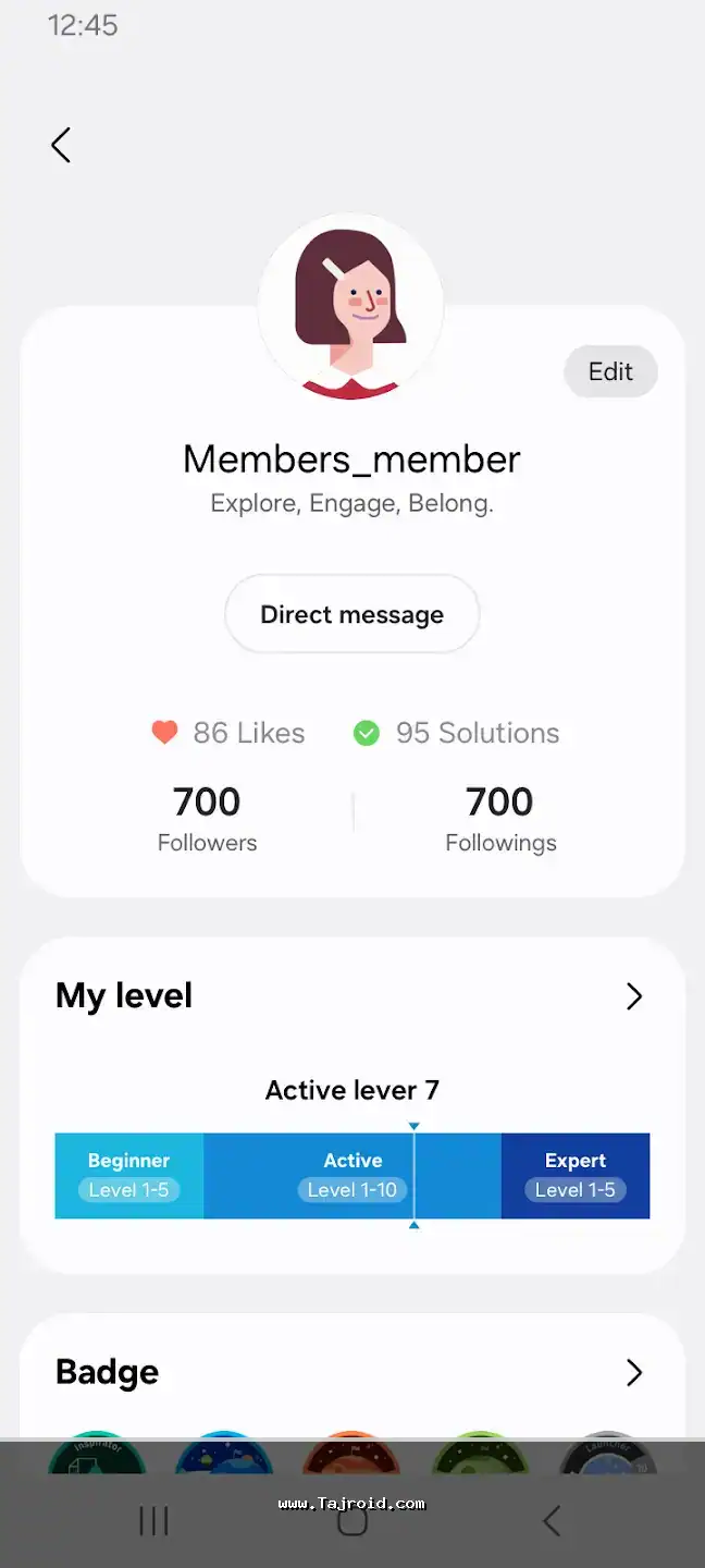 این برنامه همچنین یک پلتفرم اجتماعی و اطلاعاتی است. در بخش «Community» می توانید با سایر کاربران گلکسی در سراسر جهان ارتباط برقرار کنید، سوالات خود را بپرسید، تجربیات و ترفندها را به اشتراک بگذارید و از دانش جمعی بهره مند شوید. سامسونگ نیز از این فیدبک ها برای بهبود محصولات خود استفاده می کند. بخش «Tips & Tutorials» نیز حاوی آموزش های ویدیویی و متنی برای استفاده حداکثری از ویژگی های دستگاه و نرم افزار One UI است.
