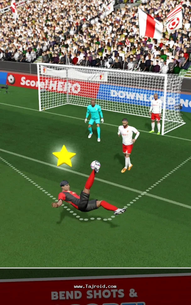 در Score! Hero اندروید بیش از 500 مرحله چالش برانگیز پیش روی شماست که به مرور امکانات جدیدی مانند کرنرها، ضربات آزاد، پاس های عمقی و شوت های قوسی را آزاد می کنید. محیط بازی به صورت سه بعدی طراحی شده و آزادی عمل بالایی برای حرکت توپ و برنامه ریزی حملات در اختیار شما قرار می دهد. نفوذ به خط دفاع حریف، ارسال پاس های هوشمند و زدن گل های تماشایی با فیزیک واقع گرایانه توپ، حس یک فوتبال سینمایی و متفاوت را منتقل می کند. گرافیک HD، انیمیشن های نرم و صداگذاری هیجان انگیز باعث شده این عنوان تجربه ای خاص در میان بازی های فوتبال موبایلی باشد.