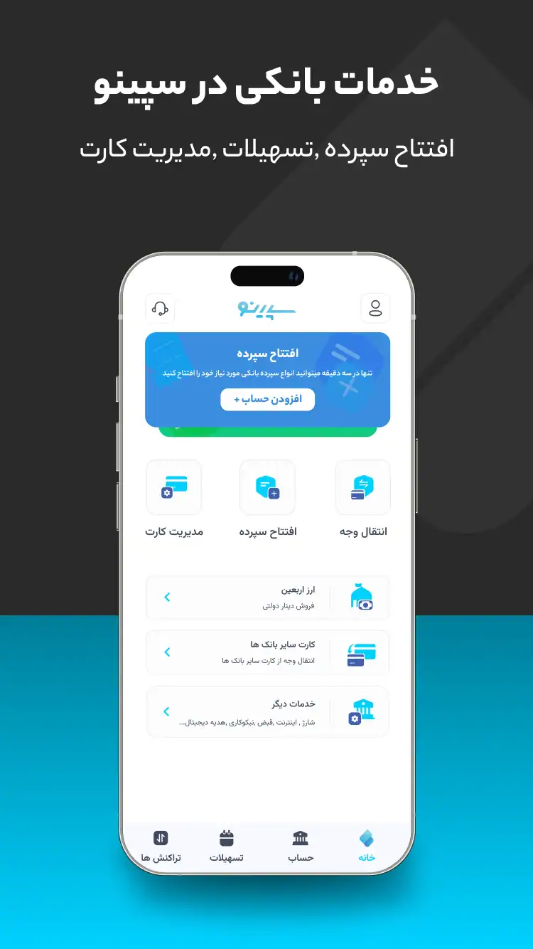 یکی از نقاط برجسته سپینو، ارائه خدمات مالی فراتر از خدمات پایه بانکی است. کاربران می توانند درخواست تسهیلات غیرحضوری ثبت کنند و شرایط دریافت و پرداخت را به صورت کامل در برنامه مشاهده کنند. این فرایند بدون نیاز به ضامن یا مراجعه حضوری انجام می شود و همین موضوع باعث شده بسیاری از افراد سپینو را به عنوان یک نئوبانک کاربردی انتخاب کنند. علاوه بر این، مدیریت کامل کارت های بانکی، مشاهده گردش حساب، دریافت صورت حساب ماهانه و انجام انتقال وجه نیز به صورت سریع و ایمن در برنامه ارائه شده است. سپینو تلاش کرده تا تمام نیازهای کاربران را در یک محیط واحد برطرف کند.