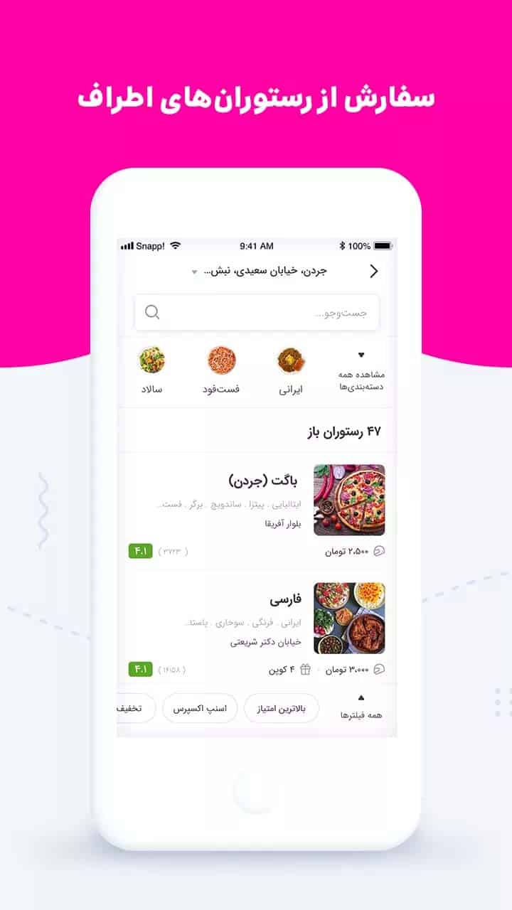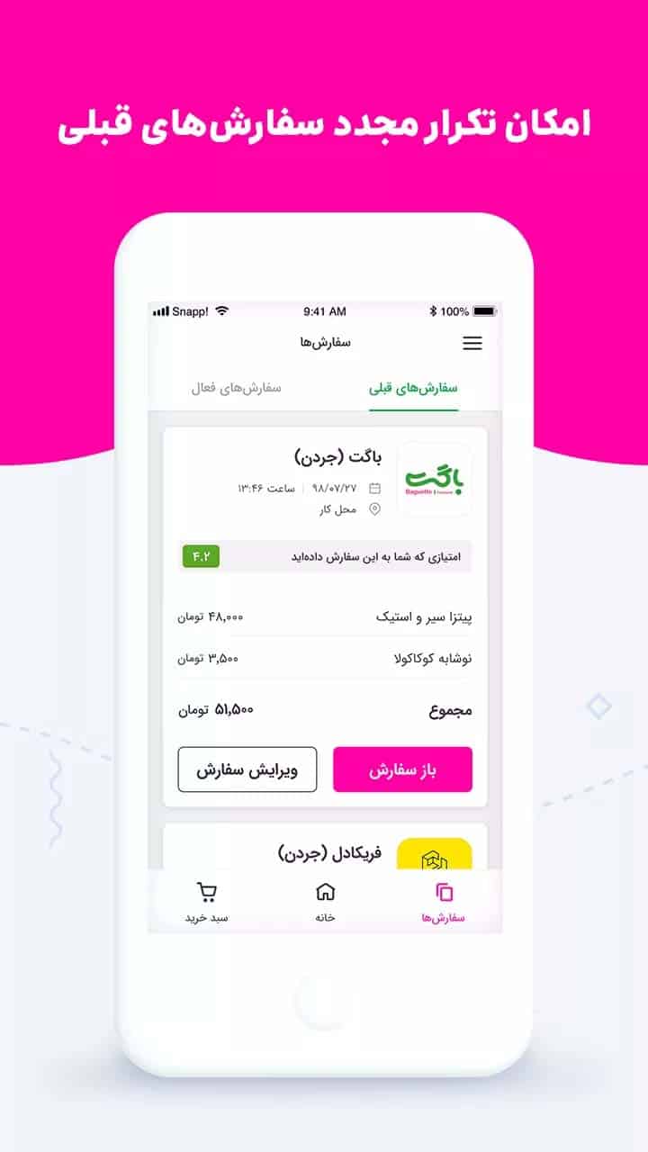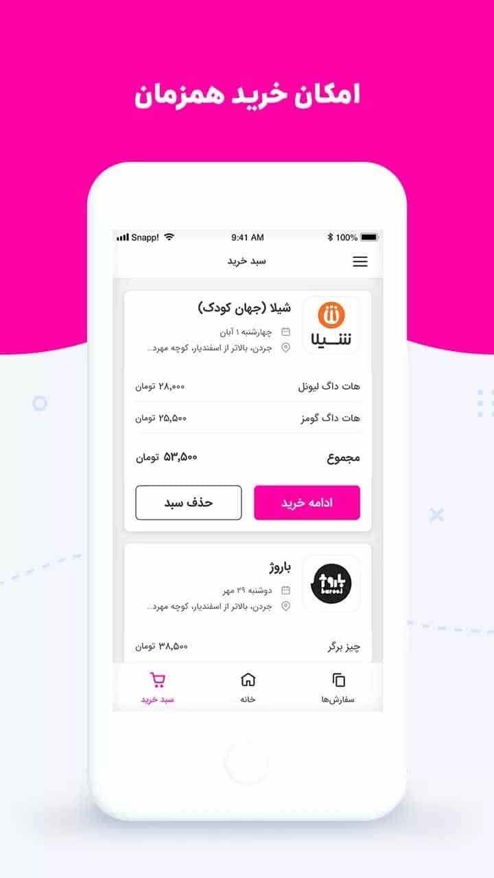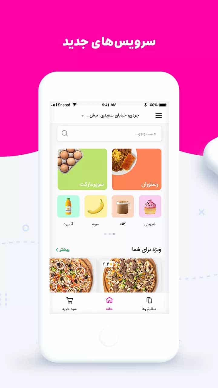 دانلود اسنپ فود – اپلیکیشن سفارش آنلاین غذا و خرید مایحتاج روزانه برای اندروید