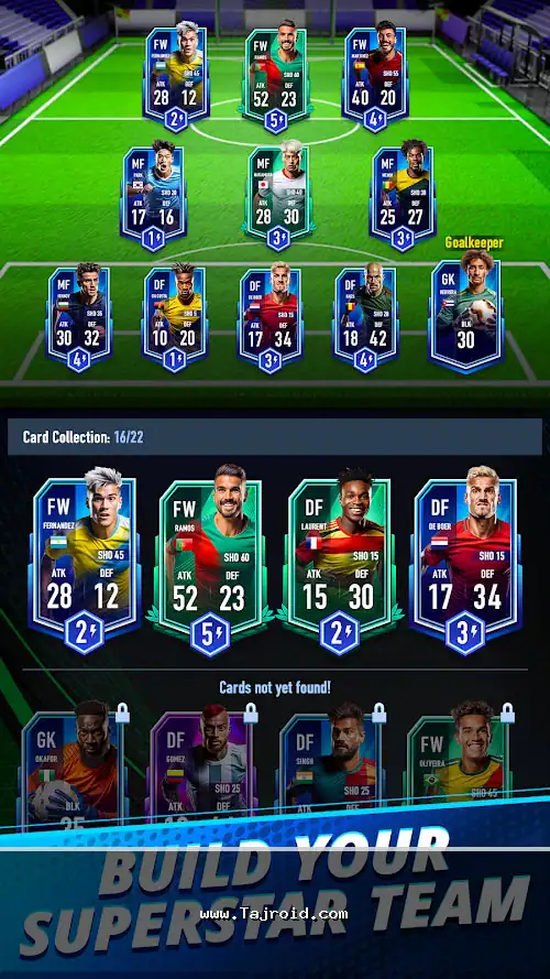 سیستم جمع آوری و ارتقای کارت ها، بخش اعتیادآور بازی است. شما با شرکت در مسابقات، باز کردن بسته های کارت و شرکت در رویدادهای ویژه، می توانید کارت های بازیکنان جدید، از ستاره های ناشناخته تا ابرستاره های جهانی، را به دست آورید. هر بازیکن (کارت) دارای آمار منحصربه فردی در زمینه هایی مانند سرعت، قدرت شوت، دقت پاس و … است. همچنین، امکان ارتقای سطح این کارت ها و حتی ادغام آنها برای ایجاد نسخه های قدرتمندتر وجود دارد.