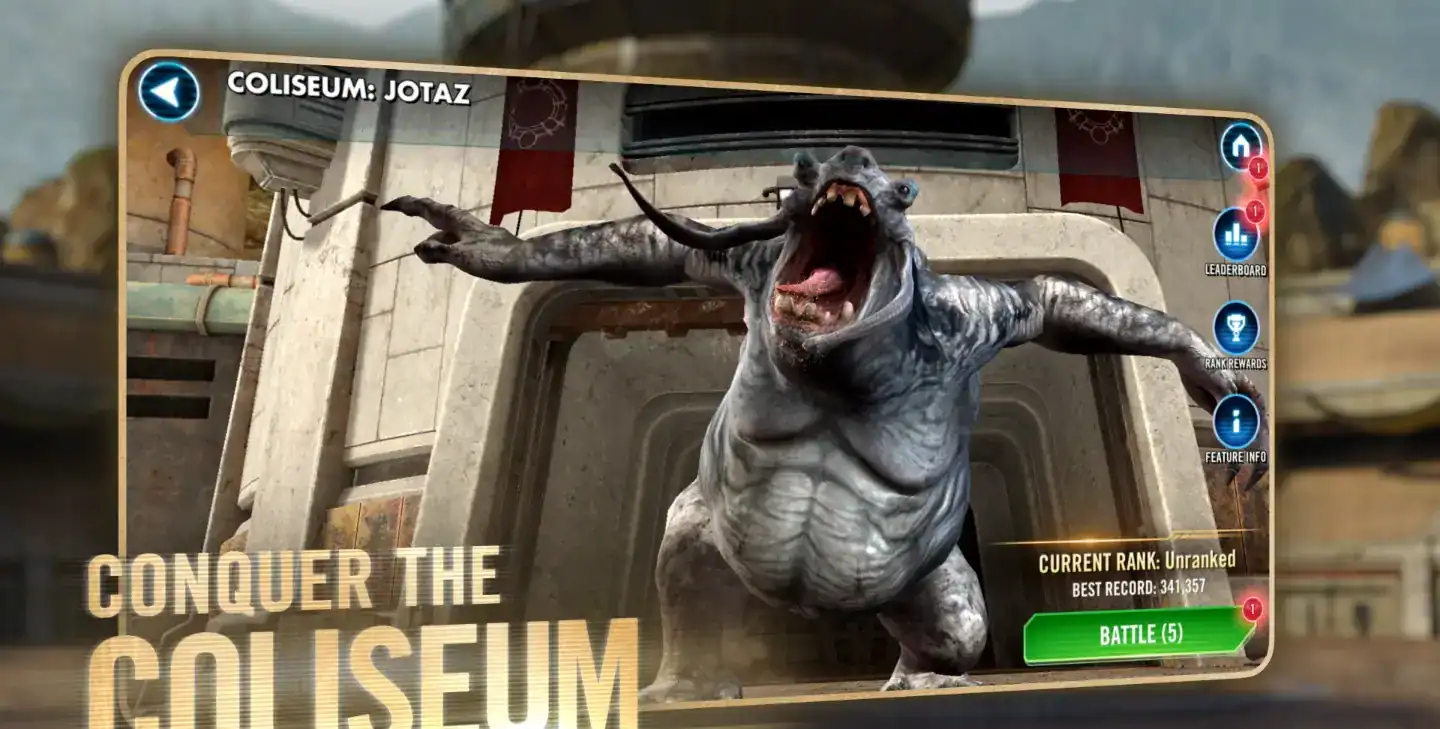Star Wars Galaxy of Heroes دارای سیستم پیشرفت و ارتقای عمیقی است که بازیکنان را قادر می سازد قهرمانان خود را ارتقا دهند، تجهیز کنند، سطح توانایی ها را افزایش دهند و تیمی شکست ناپذیر بسازند. علاوه بر نبردهای PvE، امکان شرکت در نبردهای آنلاین PvP نیز وجود دارد که می توانید در آن ها با بازیکنان سراسر جهان رقابت کنید. این بخش یکی از جذاب ترین قسمت های بازی است که هیجان و رقابت واقعی را وارد جریان بازی می کند.