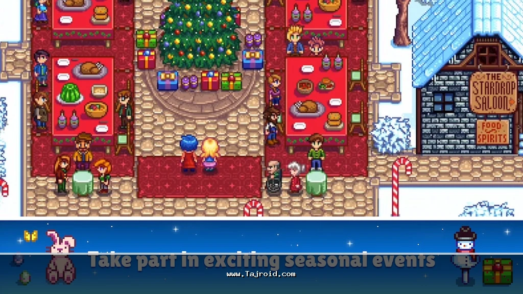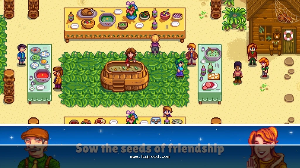 یکی از جذاب ترین جنبه های Stardew Valley، تعامل اجتماعی با ساکنان دهکده است. شما می توانید با همسایه ها صحبت کنید، مأموریت های آن ها را انجام دهید، روابط دوستانه یا حتی عاشقانه بسازید و در نهایت تشکیل خانواده دهید. هر شخصیت داستان و ویژگی های خاص خود را دارد و همین موضوع باعث می شود دنیای بازی زنده و پویا به نظر برسد. جشن ها و رویدادهای فصلی نیز تنوع بالایی به روند بازی می بخشند.