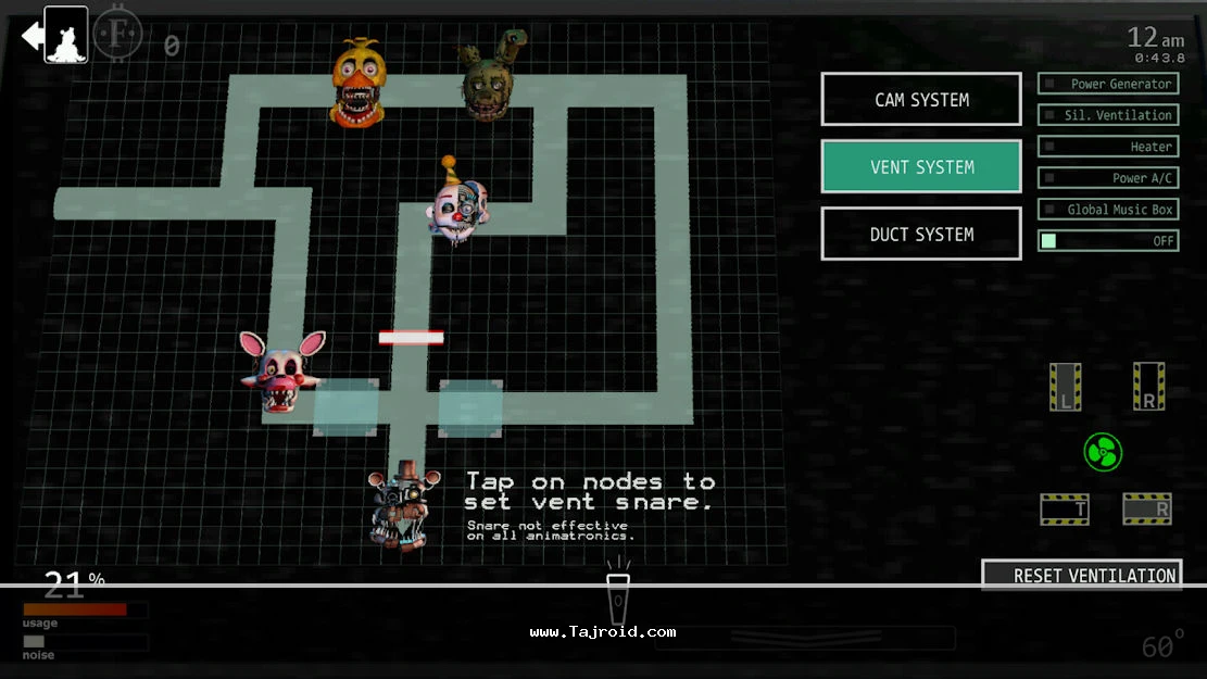 برای علاقه مندان، علاوه بر نسخه معمولی Ultimate Custom Night، نسخه مود (Mod) نیز به صورت جداگانه در دسترس قرار گرفته است که در آن کیت نجات (Safety Kit) از طریق تنظیمات و بخش آنلاک فعال بوده و امکان کنترل بهتر شرایط بحرانی را فراهم می کند. این نسخه کمک می کند تجربه بازی متعادل تر و قابل مدیریت تر شود، به ویژه برای کاربرانی که می خواهند محتوای کامل بازی را بدون فشار بیش از حد تجربه کنند. بازی تست شده با اجرای کاملاً آفلاین است و بدون نیاز به اینترنت اجرا می شود. برای دانلود نسخه معمولی و نسخه مود این بازی ترسناک اندروید می توانید به سایت تاجروید مراجعه کنید و این اسپین آف جذاب از دنیای FNaF را دریافت نمایید.