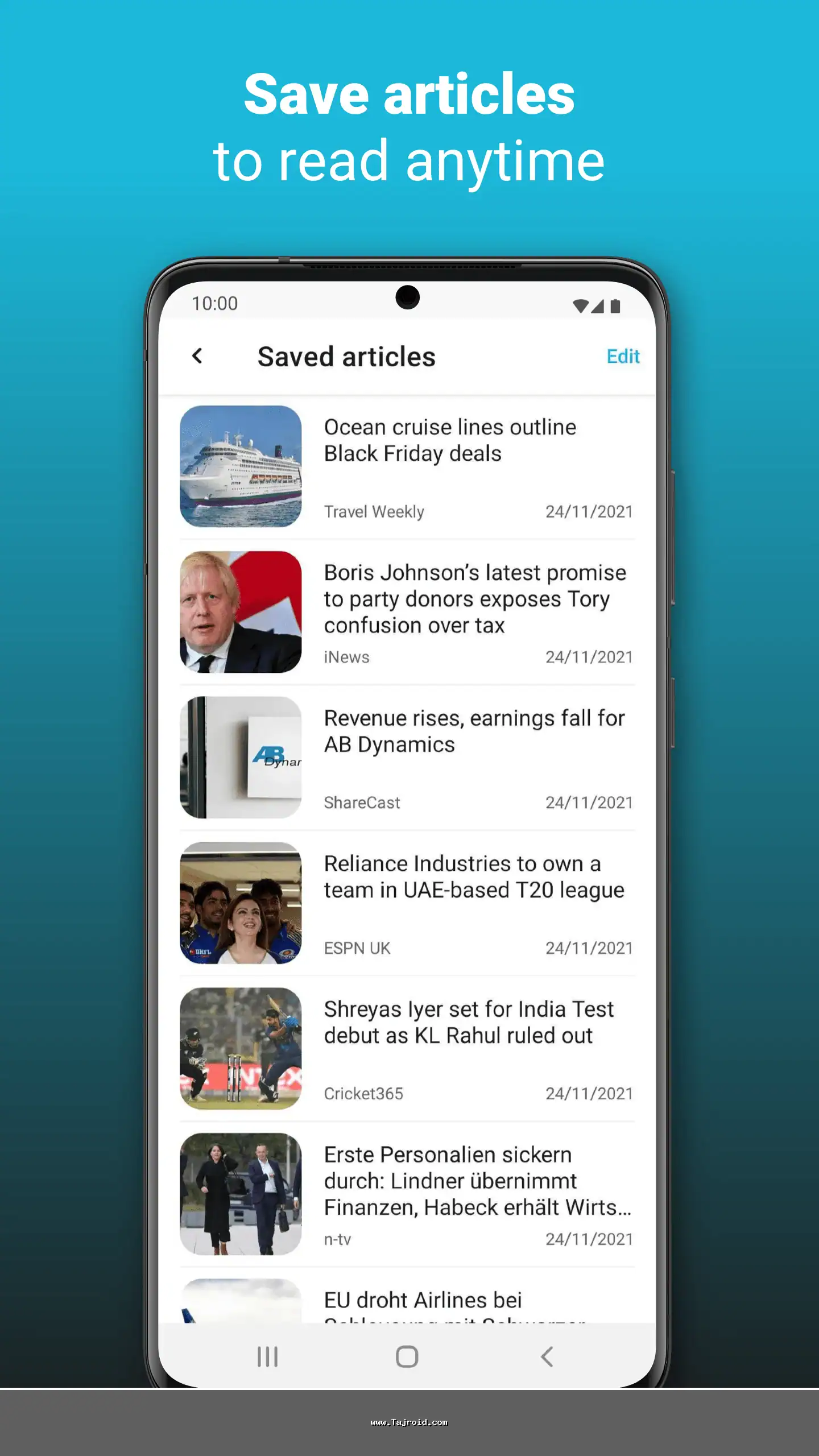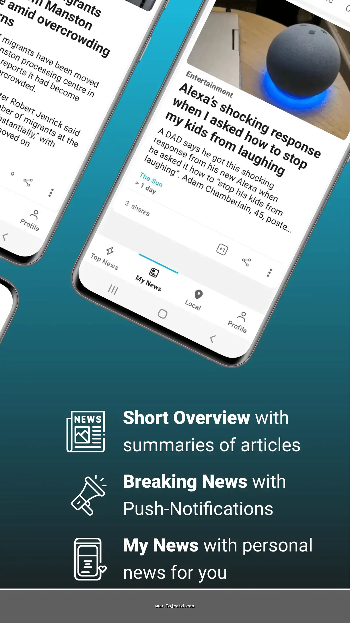 برای دانلود آخرین نسخه رسمی و کامل این اپلیکیشن خبری بهینه شده برای گلکسی ها، سایت تاجروید یک منبع مطمئن است. شما می توانید این نسخه را به سرعت دریافت کنید. برای داشتن یک مرور روزانه سریع و جامع بر اخبار جهان، کافی است به تاجروید مراجعه نمایید.